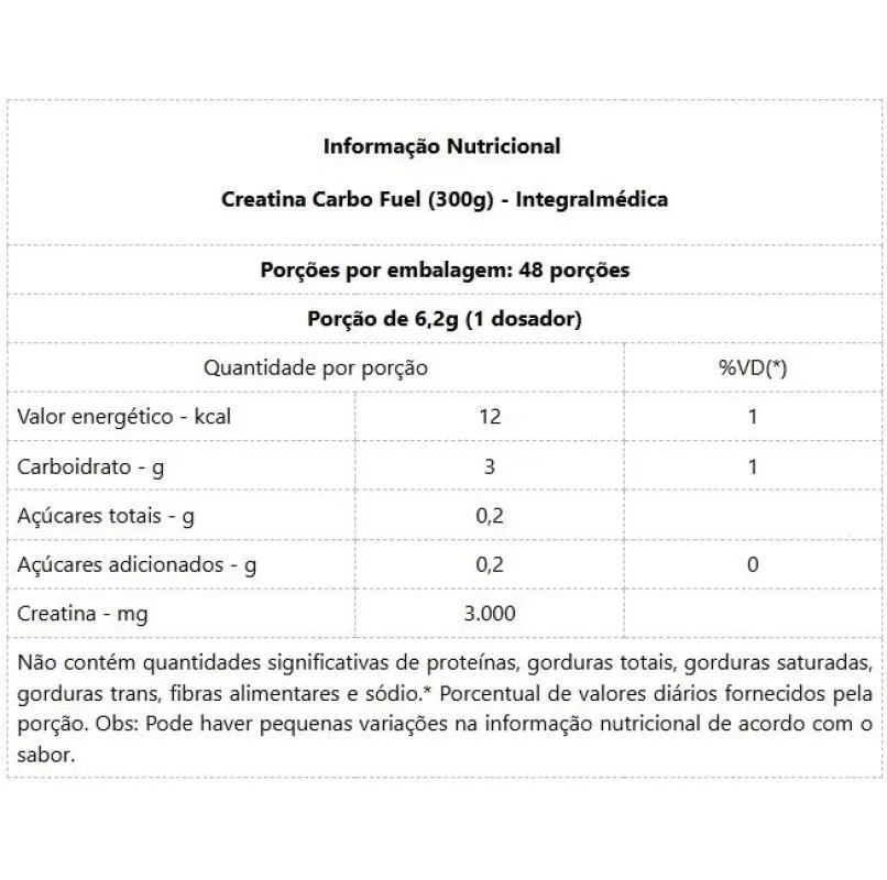 Creatina Carbo Fuel (300G) - Sabor: sem Sabor