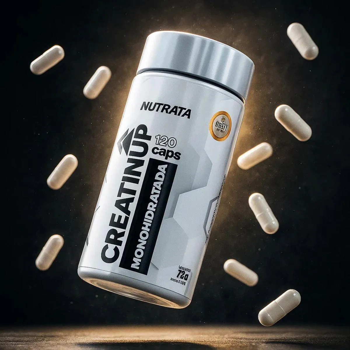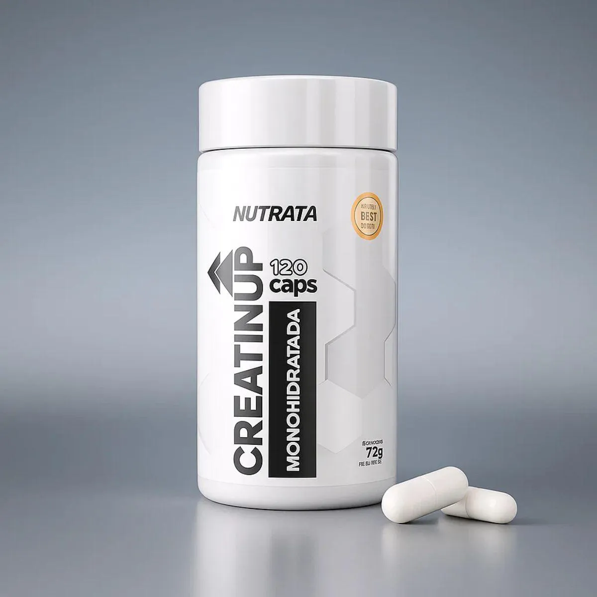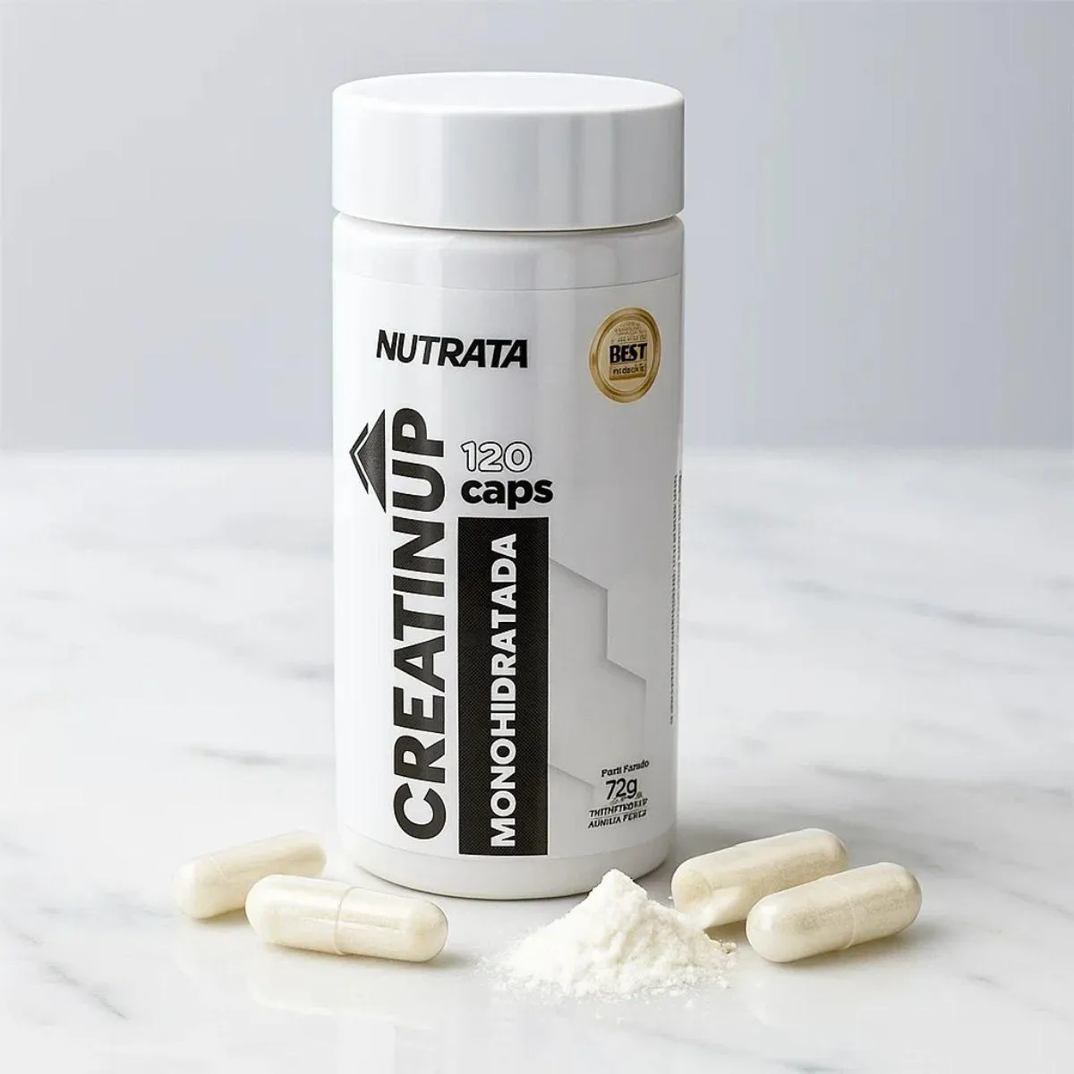 creatina Creatin UP Monohidratada 120 Capsulas Nutrata apresenta-se em cápsulas práticas, ideal para quem procura incorporar o suplemento na rotina diária sem complicações.