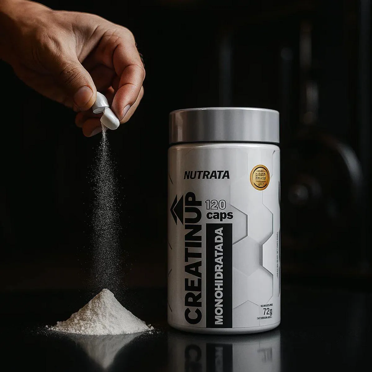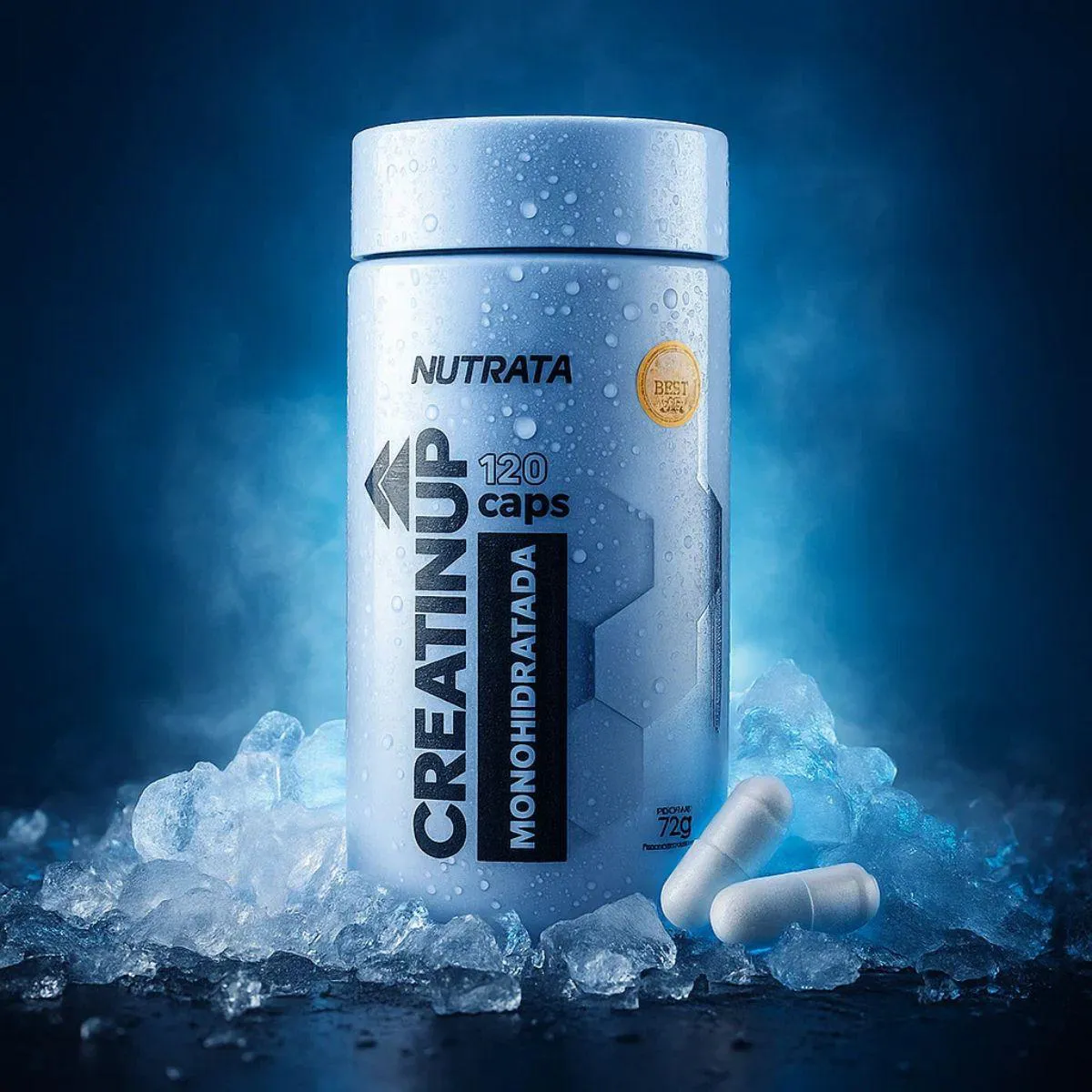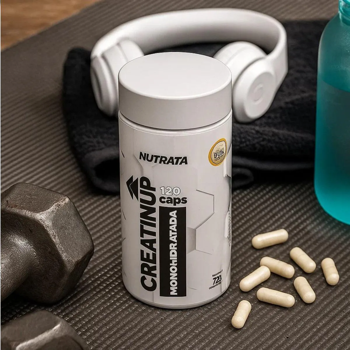 creatina Creatin UP Monohidratada 120 Capsulas Nutrata apresenta-se em cápsulas práticas, ideal para quem procura incorporar o suplemento na rotina diária sem complicações.