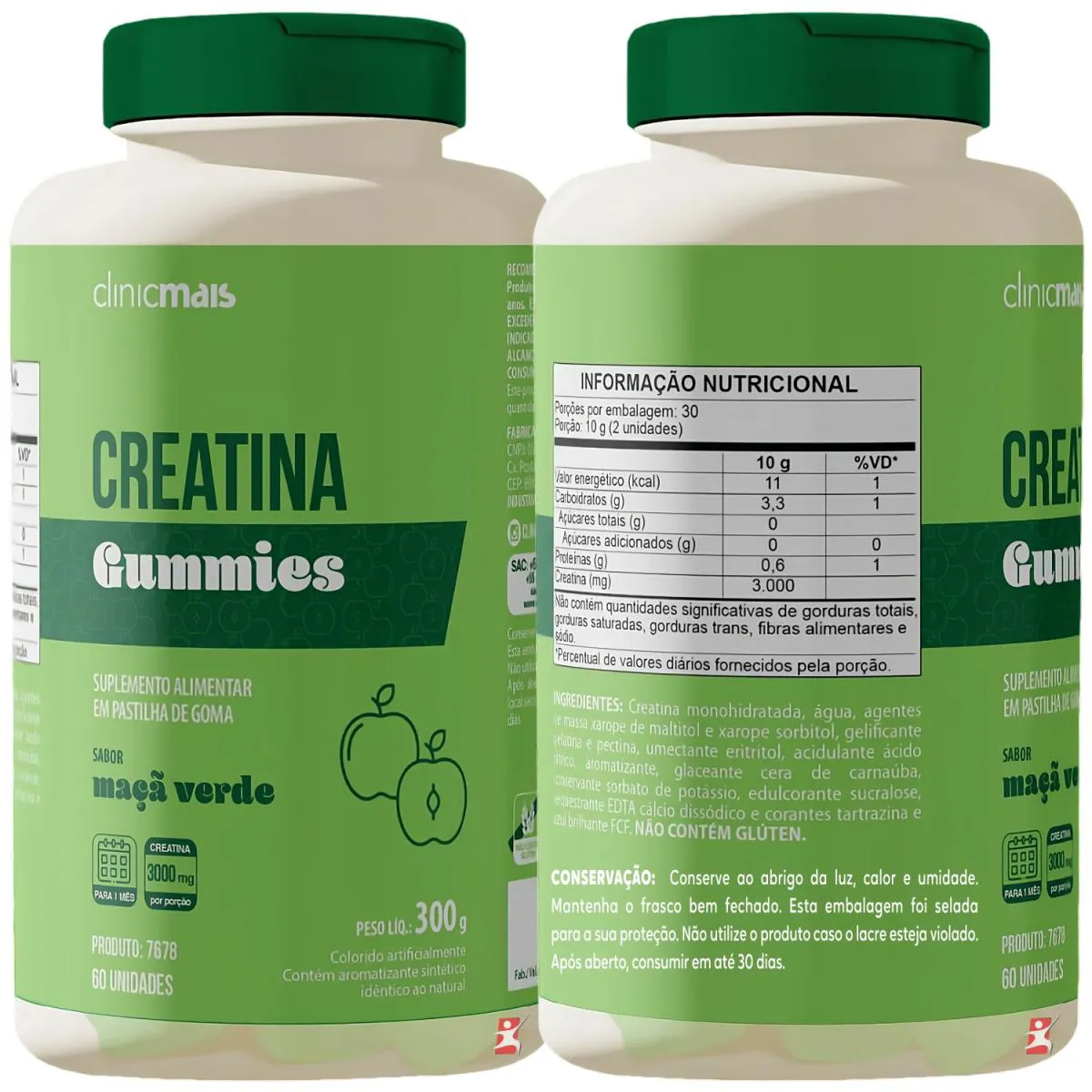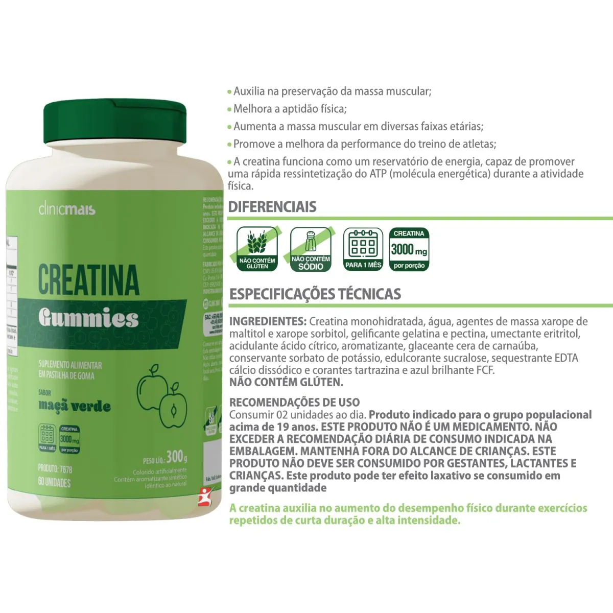 creatina EM GUMMIES 3G POR DOSE MAÇÃ VERDE 60 GOMAS - CLINICMAIS