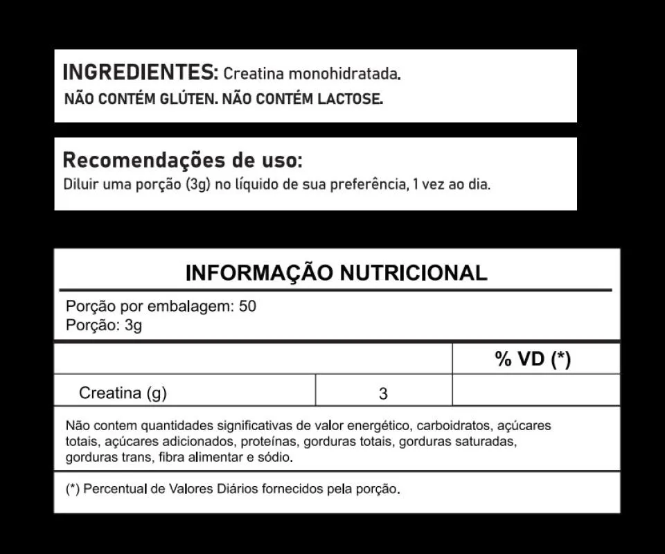 INGREDIENTES DA CREATINA MONOHIDRATADA HF SUPLEMENTS: