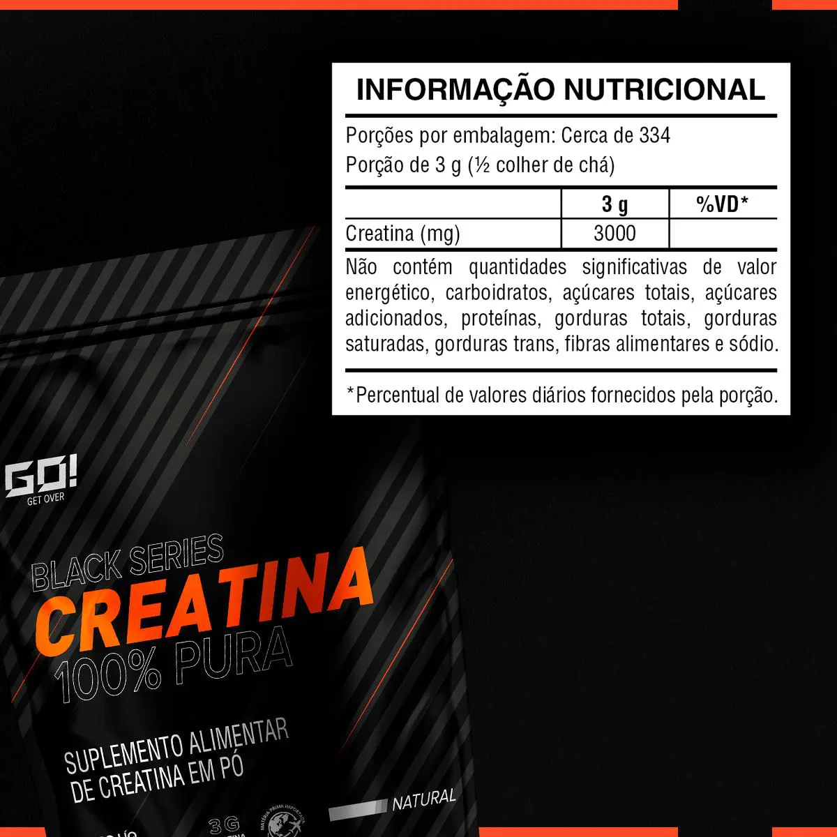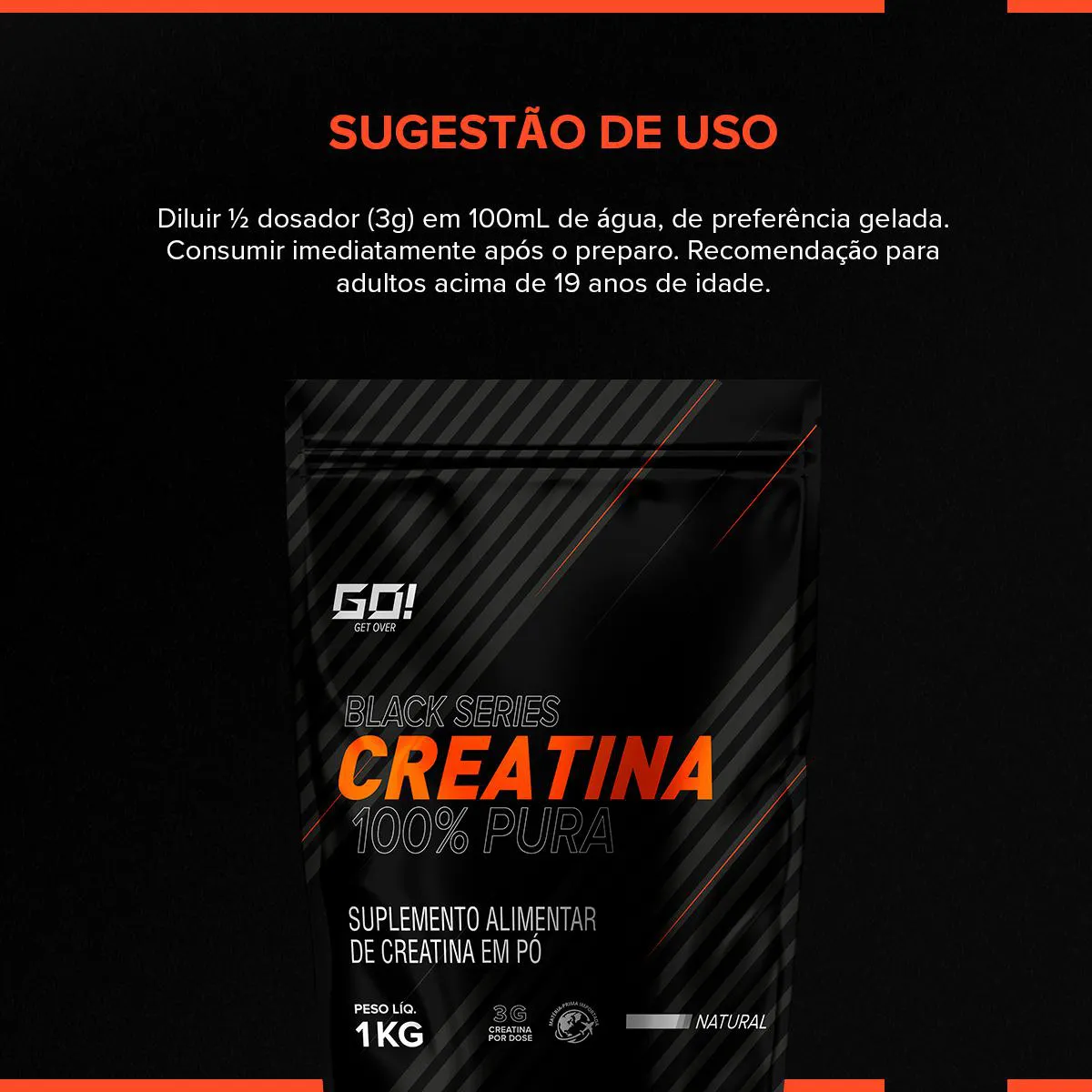 Por que escolher a Creatina 100% Pura da Go: Creatina 100% pura e de alta qualidade; Potencializa força e explosão muscular; Auxilia no ganho de massa magra; Melhora a performance e o rendimento nos treinos; Protege a musculatura contra o catabolismo;