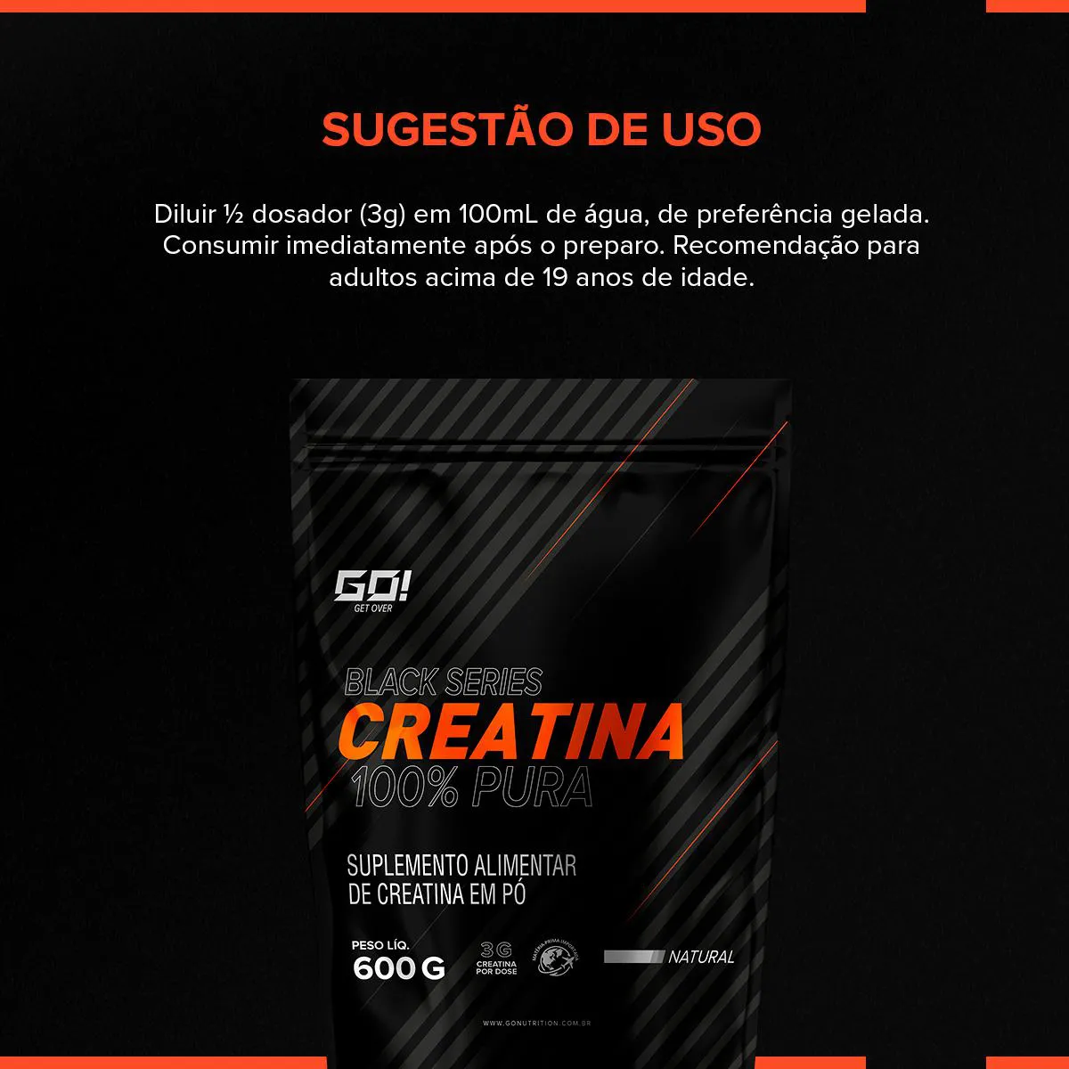 Por que escolher a Creatina 100% Pura da Go: Creatina 100% pura e de alta qualidade; Potencializa força e explosão muscular; Auxilia no ganho de massa magra; Melhora a performance e o rendimento nos treinos; Protege a musculatura contra o catabolismo;