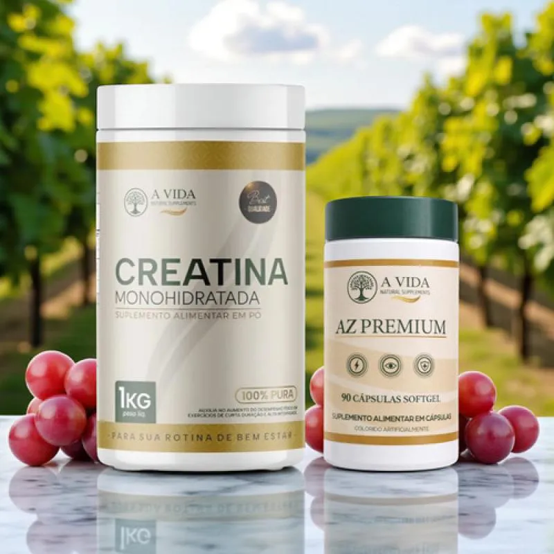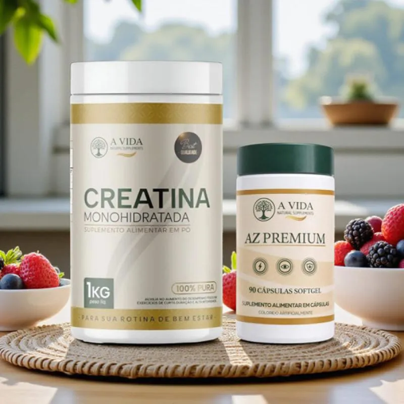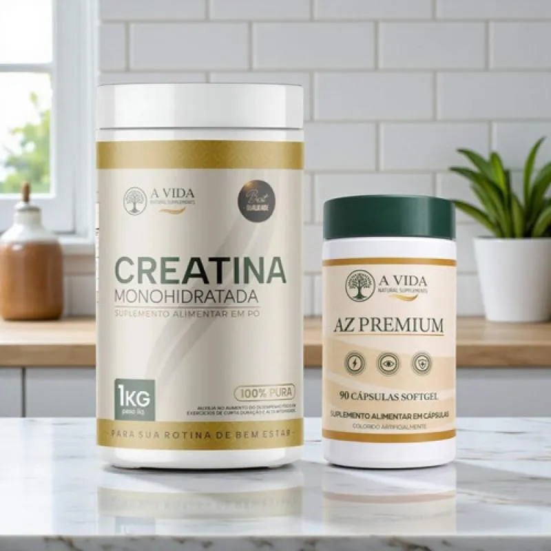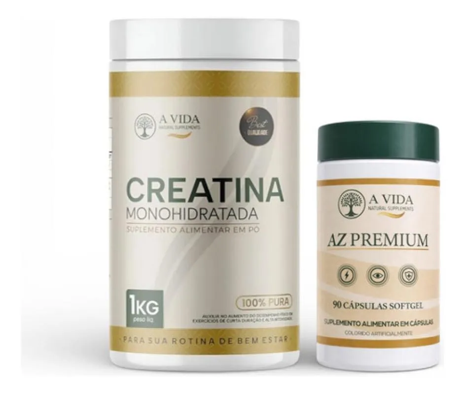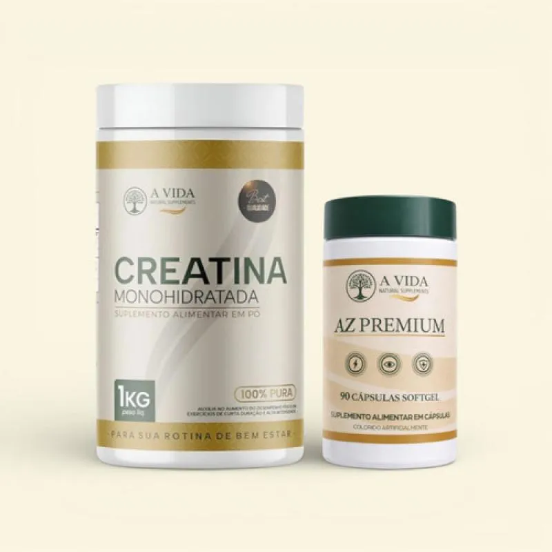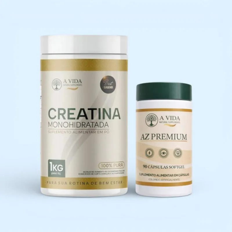 Combo creatina Monohidratada 1kg + AZ Premium 90 Cápsulas – A Vida Natural Supplements