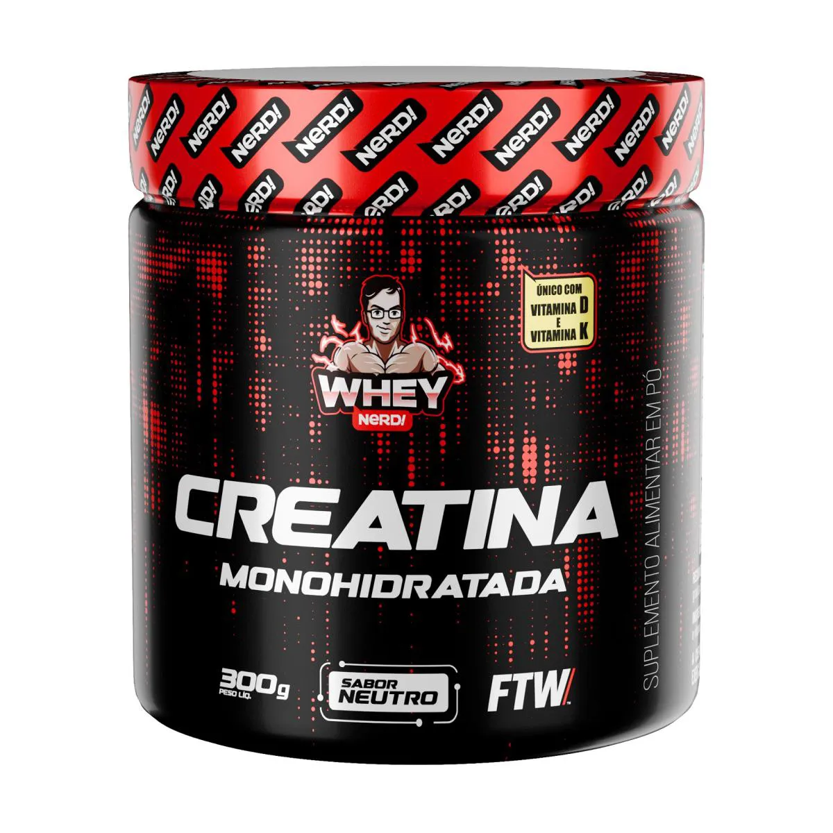 creatina Monohidratada 300g - Whey NerdO que é / Para que serveCreatina Monohidratada Whey Nerd é um suplemento alimentar desenvolvido para complementar a ingestão de creatina, um composto naturalmente presente no organismo, e vitaminas D e K. Indicado para adultos com estilo de vida ativo.Produto destinado à complementação nutricional de creatina, conforme recomendação de profissional de saúde, associado a uma alimentação equilibrada.IngredientesCreatina micronizada monohidratada, vitamina d (colecalciferol) e vitamina K (fitomenadiona).
