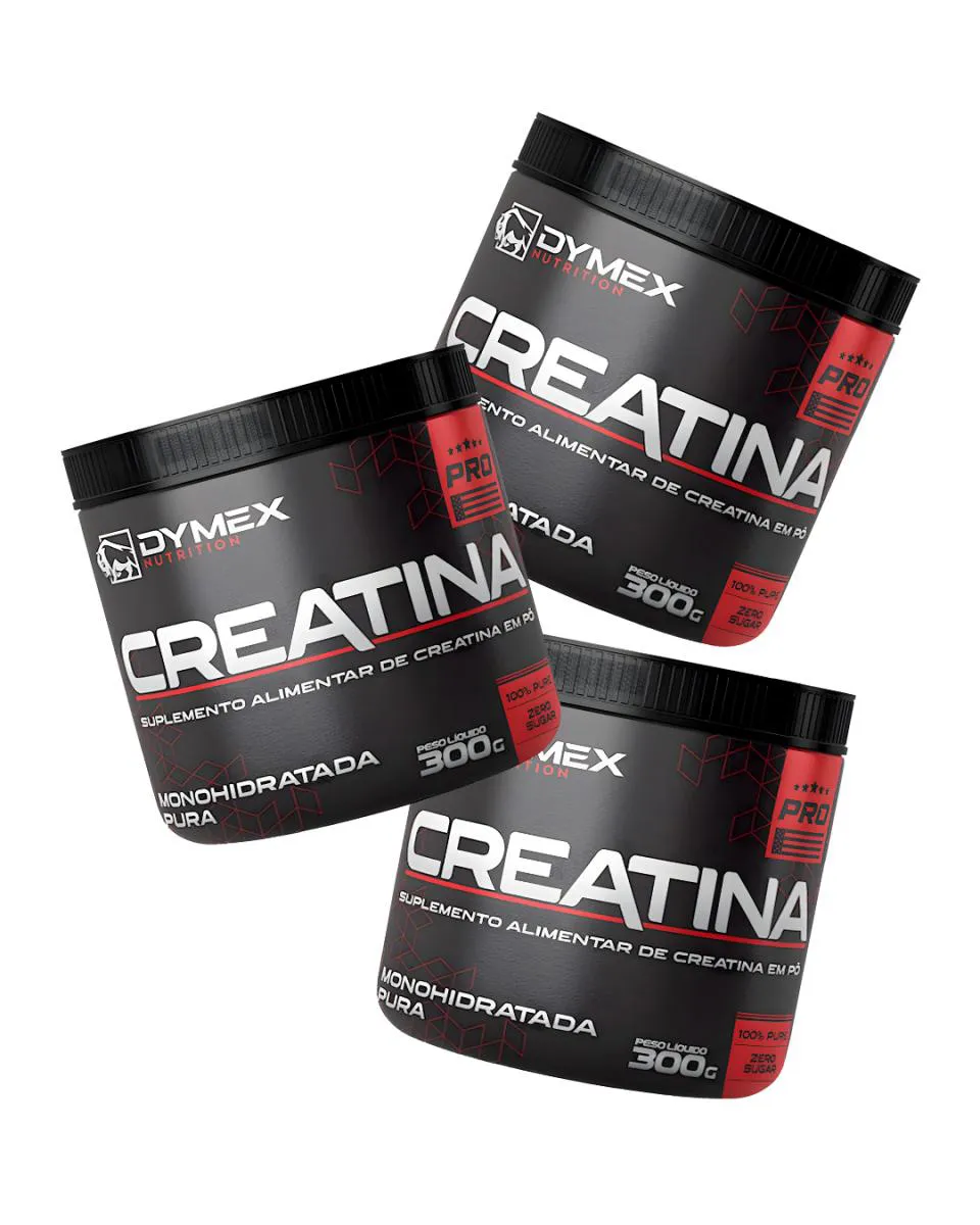 Creatina Monohidratada Pura Dymex em Pó Pote 300g Zero Açúcar 03 unidades