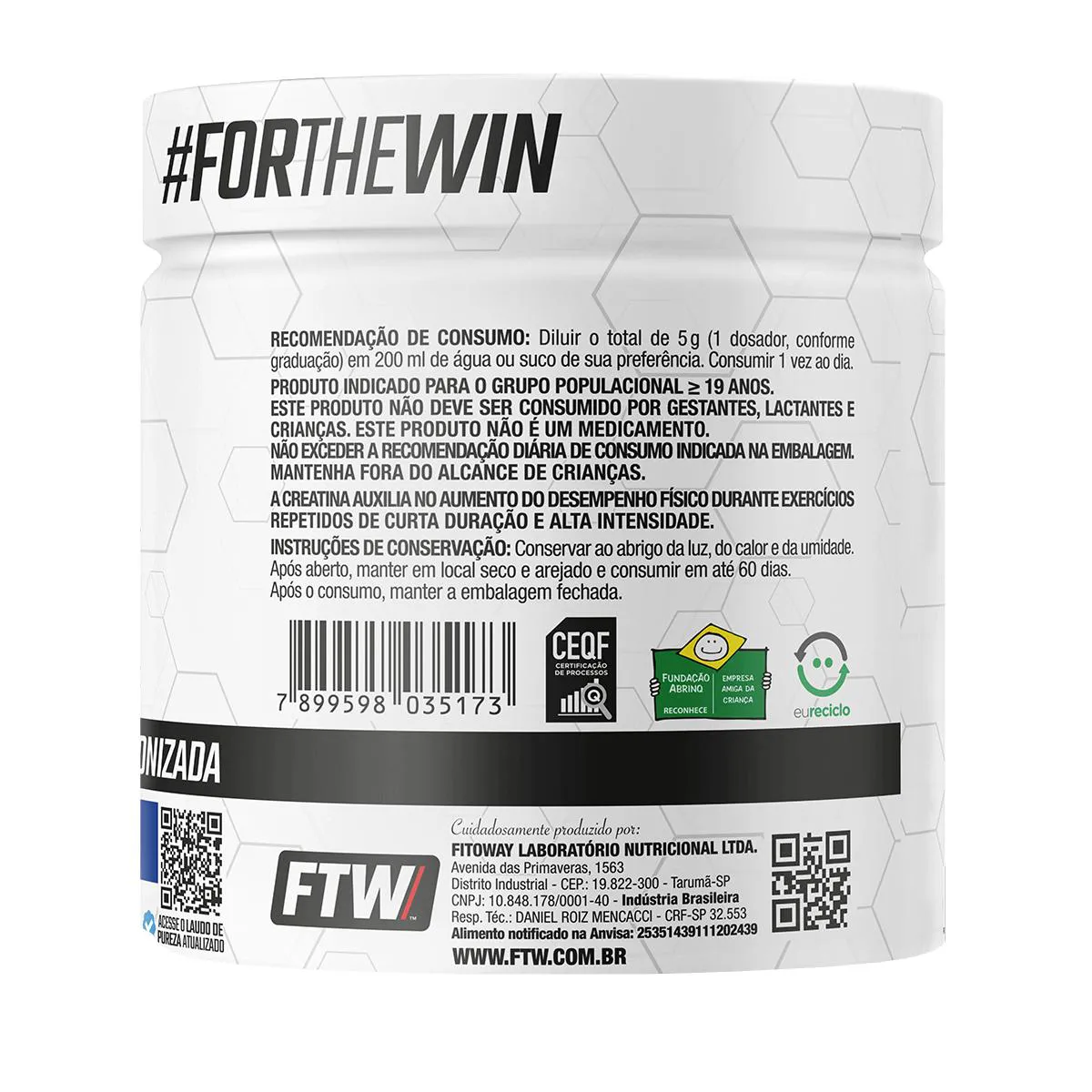 O que é / Para que serveA nova creatina da FTW tem tecnologia Ultramesh micronizada para dissolução mais eficiente, creatina monohidratada pura, segura e eficaz. Recomendado para atletas, pessoas ativas e idosos. Busque sempre orientação profissional.IngredientesCreatina monohidratada micronizada.NÃO CONTÉM GLÚTEN. ApresentaçãoPote com 300g
