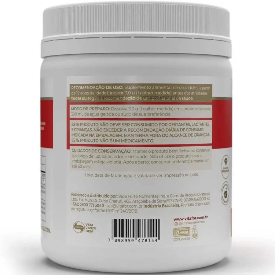 Isento de registro anvisa de acordo com a rdc 27/2010 creatina Monohidratada 300g Vitafor - Creatine creatine Vitafor é um suplemento alimentar, composto por creatina monohidratada em pó de alta qualidade. Um dos suplementos mais pesquisados cientificamente e entre os mais utilizados no esporte, a creatina é um composto de aminoácidos presente nas fibras musculares. A creatina é produzida em pequena quantidade pelo nosso corpo. é mais comum sua presença em alimentos de origem animal: boi, frango e peixe. Pela característica de origem animal a suplementação também pode ser indicada para vegetarianos e veganos. Graças aos avanços nutricionais tanto pessoas que buscam melhorar o desempenho esportivo como as que buscam a manutenção da massa muscular com a prática de atividade física podem contar com um importante auxílio: a creatina. Benefícios: - 100% Creatina Monohidratada; - Auxílio no aumento do desempenho físico durante exercícios repetidos de curta duração e alta intensidade; - Alta solubilidade; - Versatilidade no consumo, pode ser adicionado à bebida de sua preferência ou diluído em água; - Selo de Qualidade VLabor. Sugestão de consumo: ingerir 3,0g (1 colher medida) em aproximadamente 300ml de água gelada ou suco de sua preferência. Ingredientes: Creatina monohidratada em pó. não contém glúten. Isento de registro anvisa de acordo com a rdc 27/2010