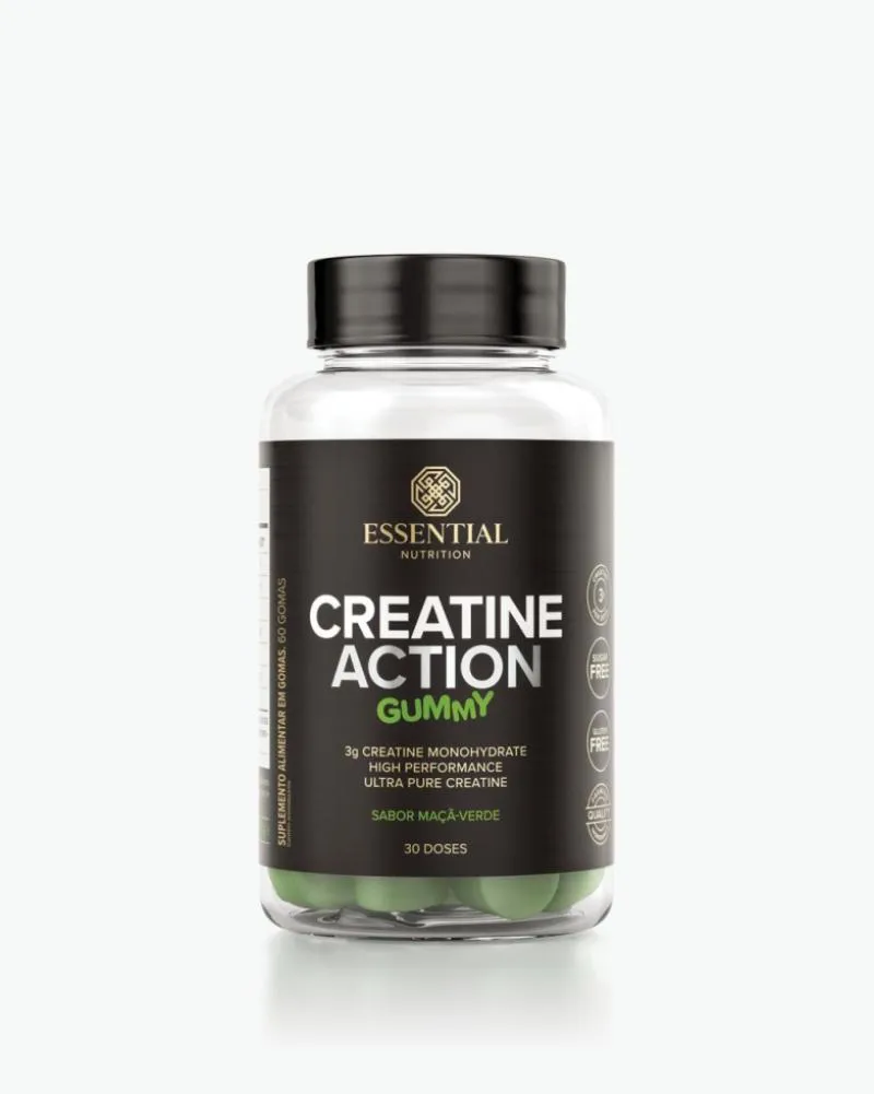O Creatine Action Gummy é um suplemento de creatina em formato de gomas, formulado com creatina mono-hidratada altamente purificada e sabores diferenciados. Cada goma fornece 3g de creatina, sendo livre de açúcares e aditivos artificiais. Trata-se de um suplemento nutricional em um formato prático e saboroso.
