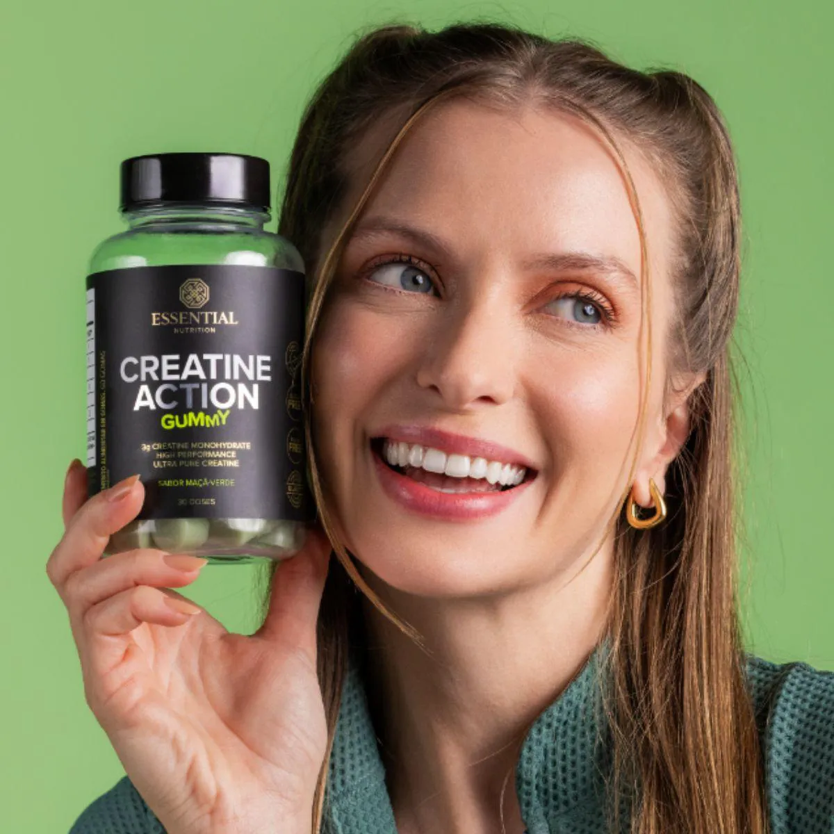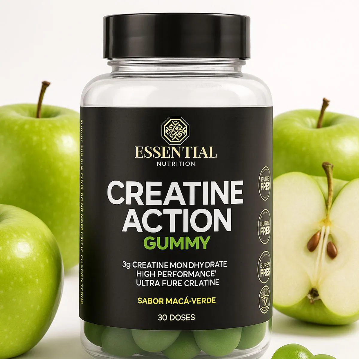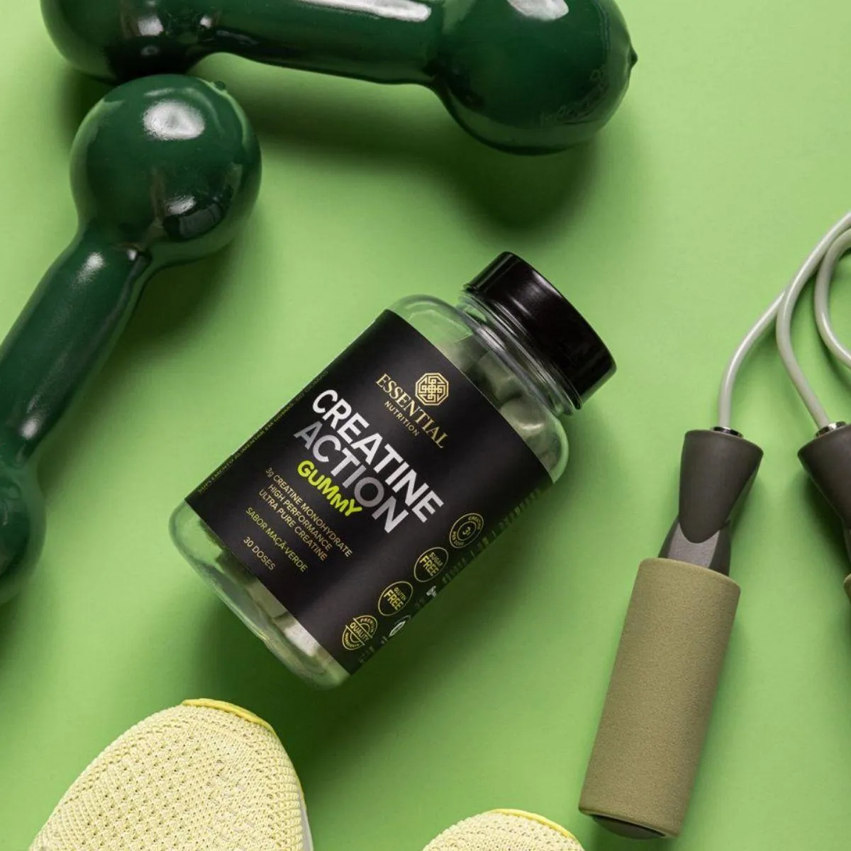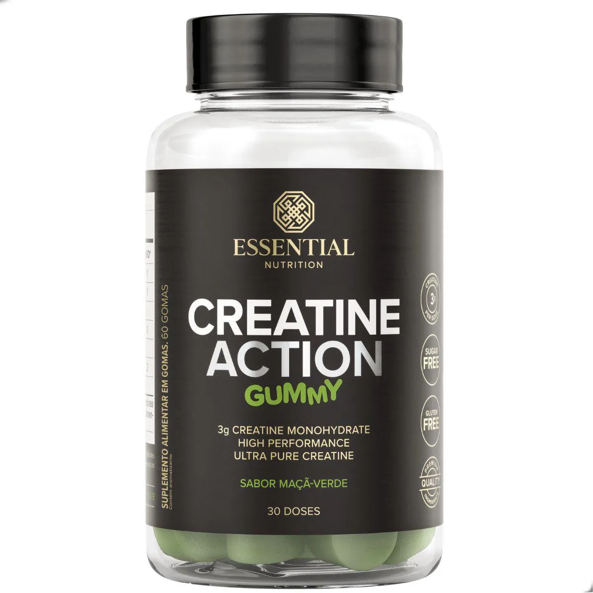 Creatine Action Gummy Pure Monohydrate 60 Gomas Essential Maçã Verde