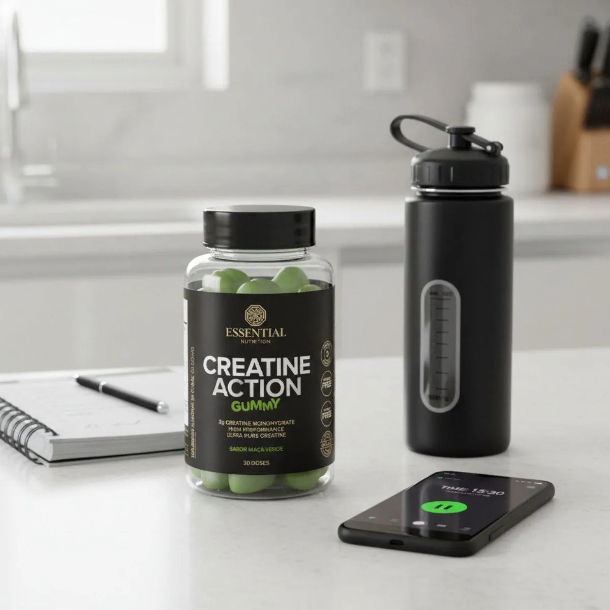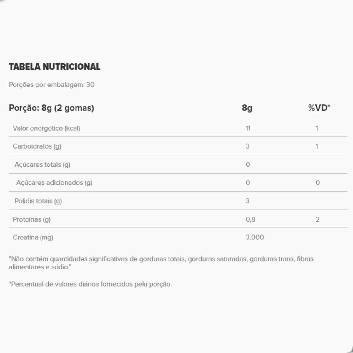 - Creatina em gomas mastigáveis para fácil consumo.