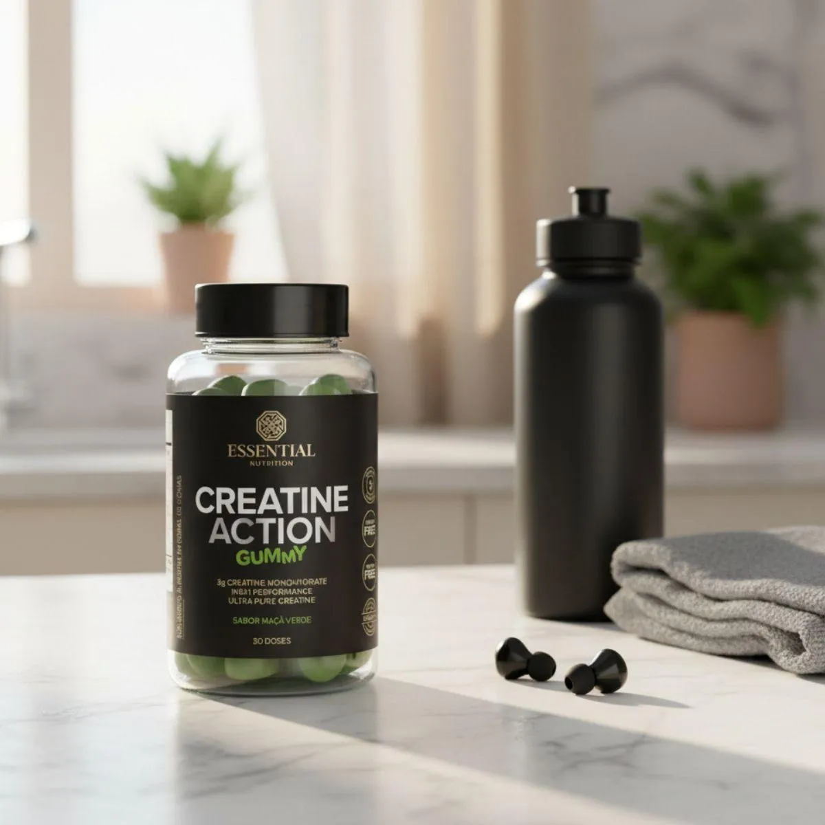O que é e para que serve o Creatine Action Gummy Pure Monohydrate 60 Gomas Essential Maçã Verde?