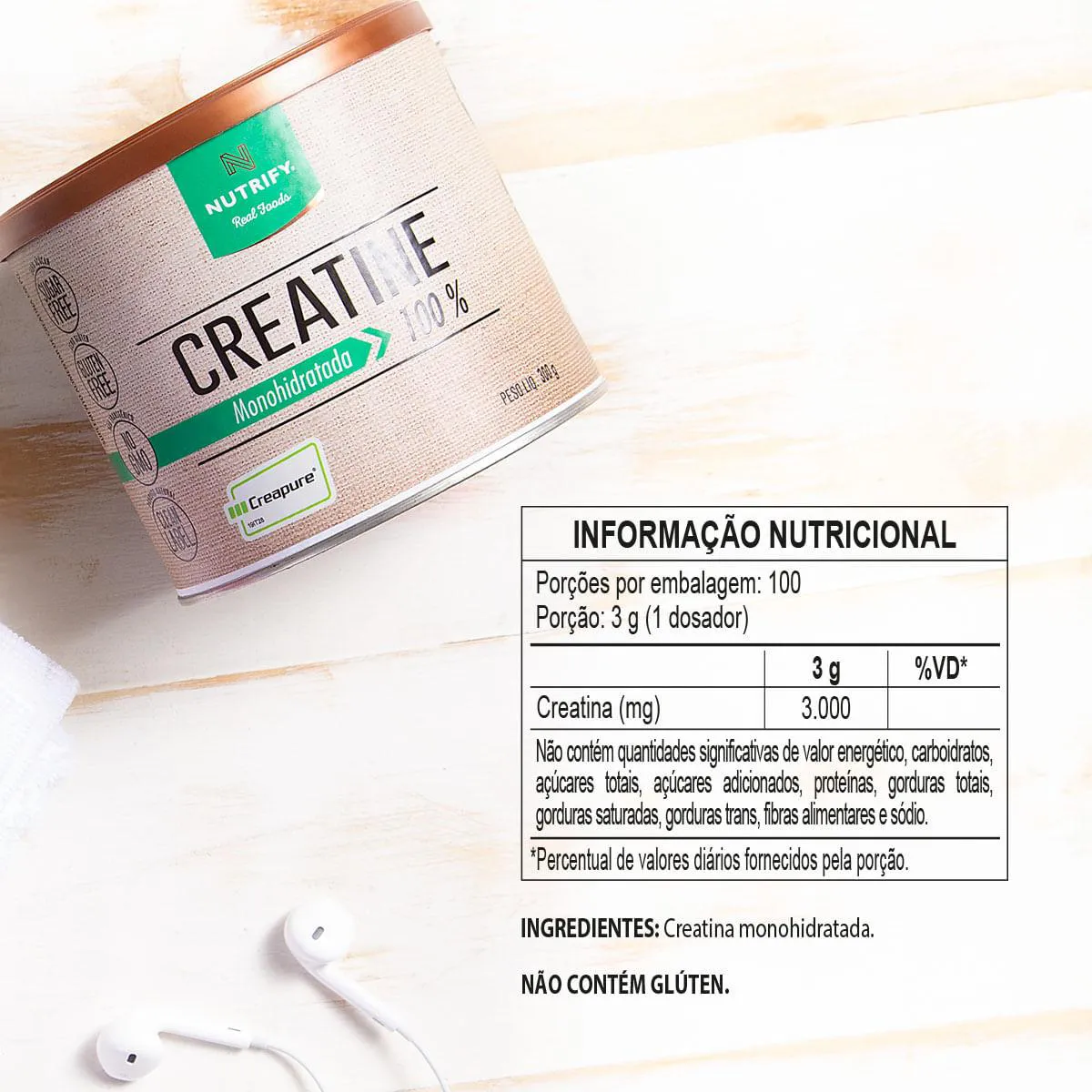 Pureza que faz toda diferença Creatine Nutrify foi desenvolvida com a mais pura matéria-prima: creatina vegana monohidratada de origem alemã (Creapure).