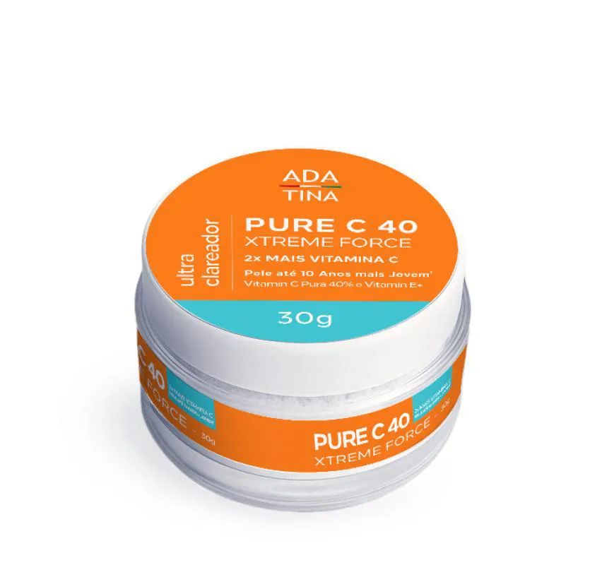 Pure C 40 Xtreme Force é um creme clareador e anti-idade ultraconcentrado, desenvolvido por ADA TINA com 2X mais vitamina C Pura para tratar manchas resistentes, melasma severo e sinais do fotoenvelhecimento avançado. Sua fórmula inovadora combina 40% de Vitamina C Pura, vitamina e+ antioxidante, Ácido Hialurônico de Baixíssimo Peso Molecular e sílicas de efeito matificante, proporcionando resultados visíveis em luminosidade, uniformidade e firmeza da pele.Clareamento Intensivo com 2X Mais Vitamina C Pura