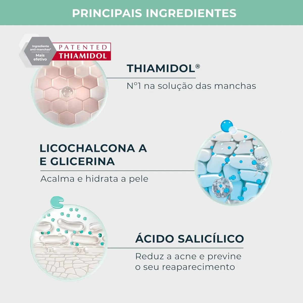 - Contém Ácido Salicílico e Thiamidol.