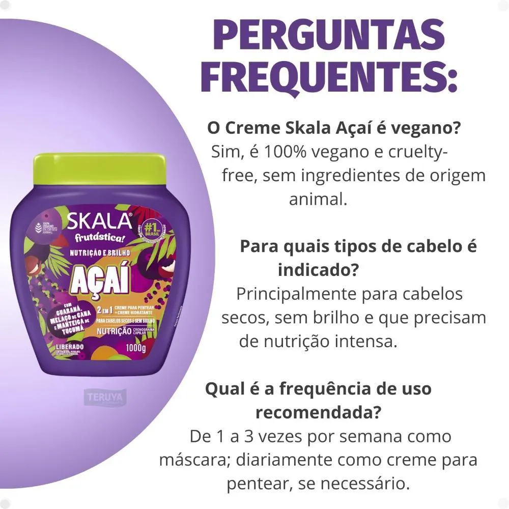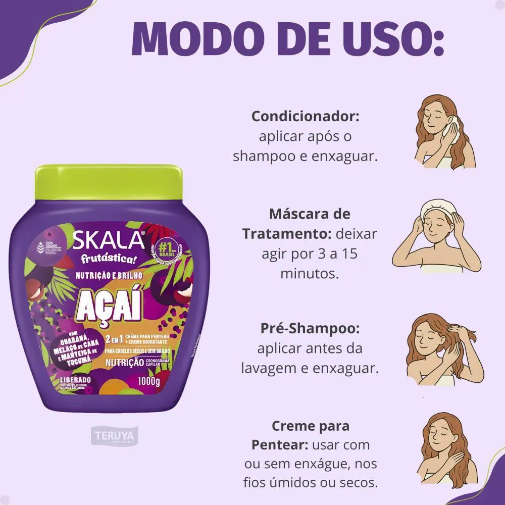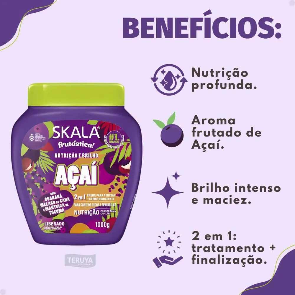 Creme De Tratamento Skala Frutastica Açai 1000g: Nutrição e Brilho Intenso para Cabelos Secos e Sem Brilho