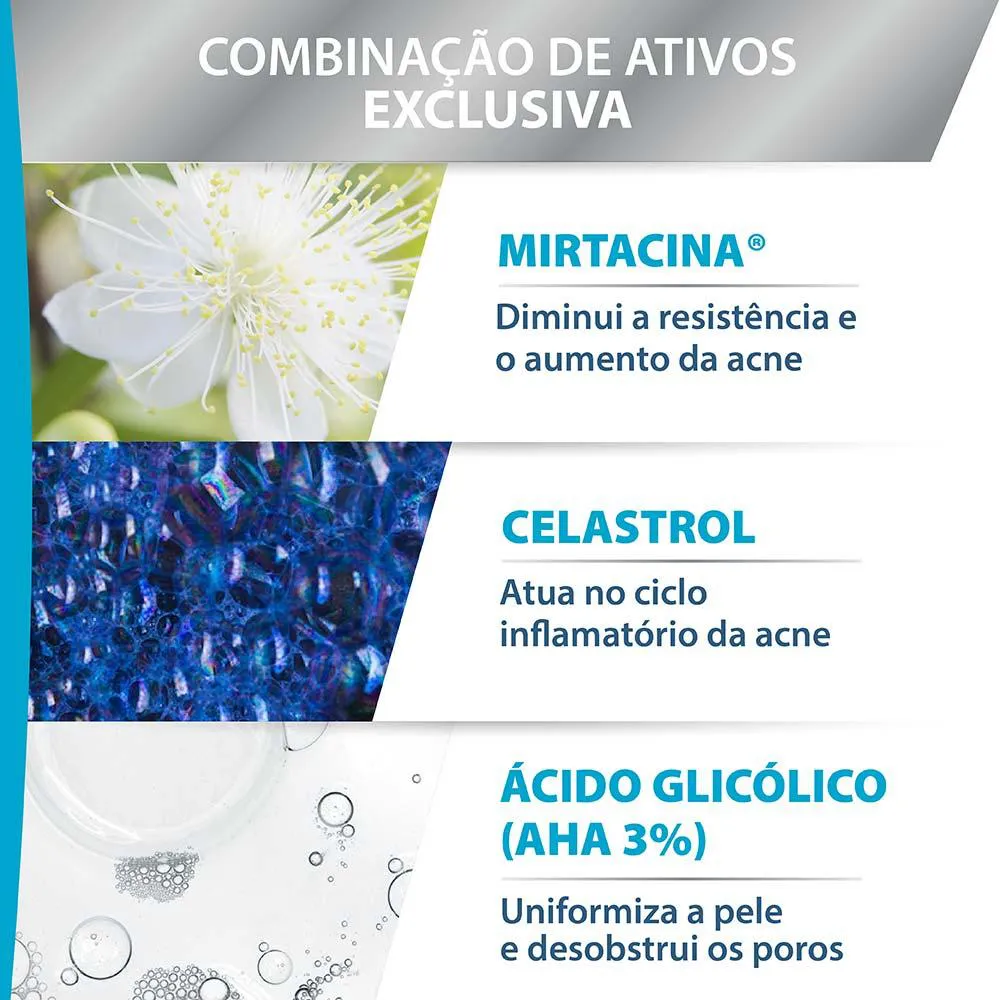 Eficácia antiacne comprovada em até 7 dias.