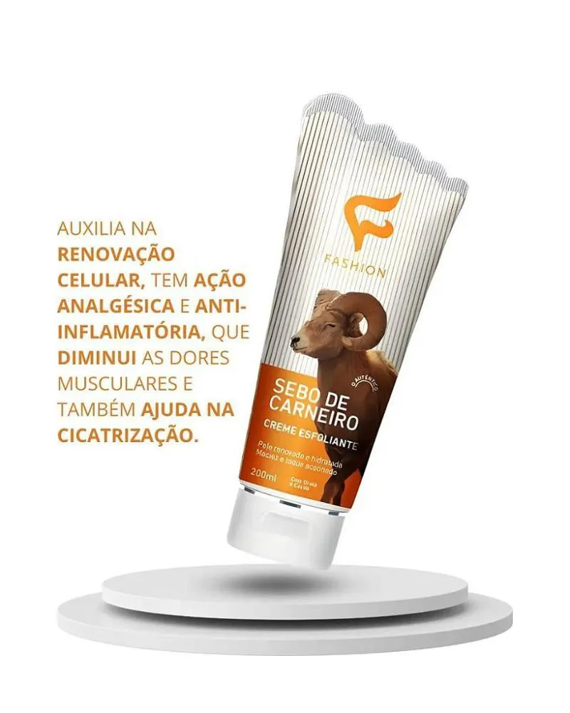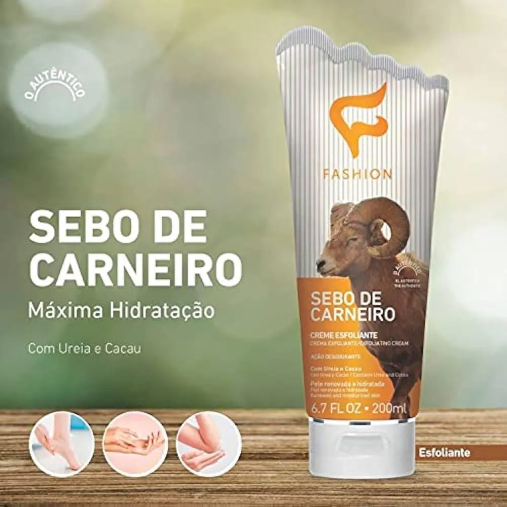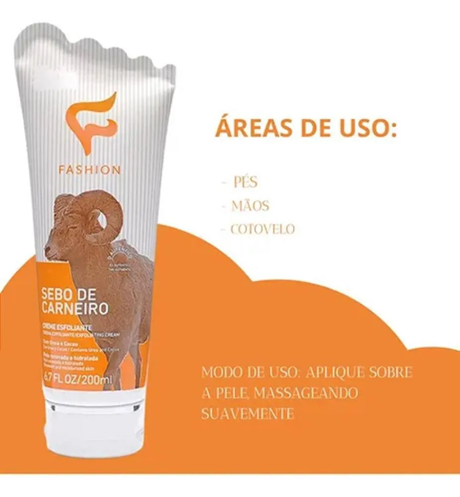 CREME ESFOLIANTE FASHION SEBO DE CARNEIRO 200ML Remove células mortas e impurezas da pele. Promove renovação celular e maciez. Combate ressecamento e aspereza. Ideal para cotovelos, joelhos e pés. Prepara a pele para outros tratamentos.