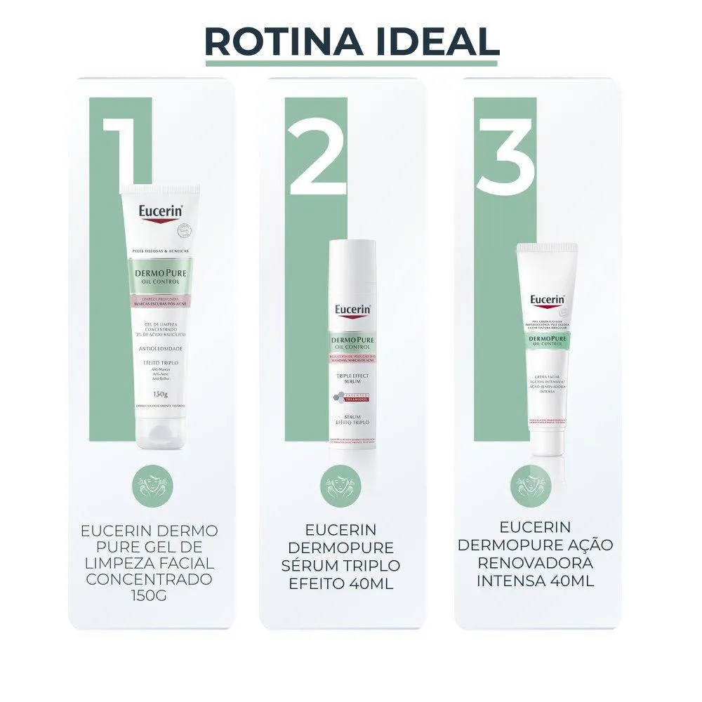 O Creme Facial Antiacne Eucerin Dermopure é um produto dermatológico desenvolvido para tratar e melhorar a pele com acne, formulado com 10% de Complexo Hidroxiácidos, Ácido Salicílico e Licochalcona A. Serve para combater cravos e espinhas, reduzir imperfeições, desobstruir poros, remover células mortas, controlar a oleosidade e prevenir o reaparecimento de novos cravos e espinhas, fortalecendo a pele e melhorando sua aparência geral.