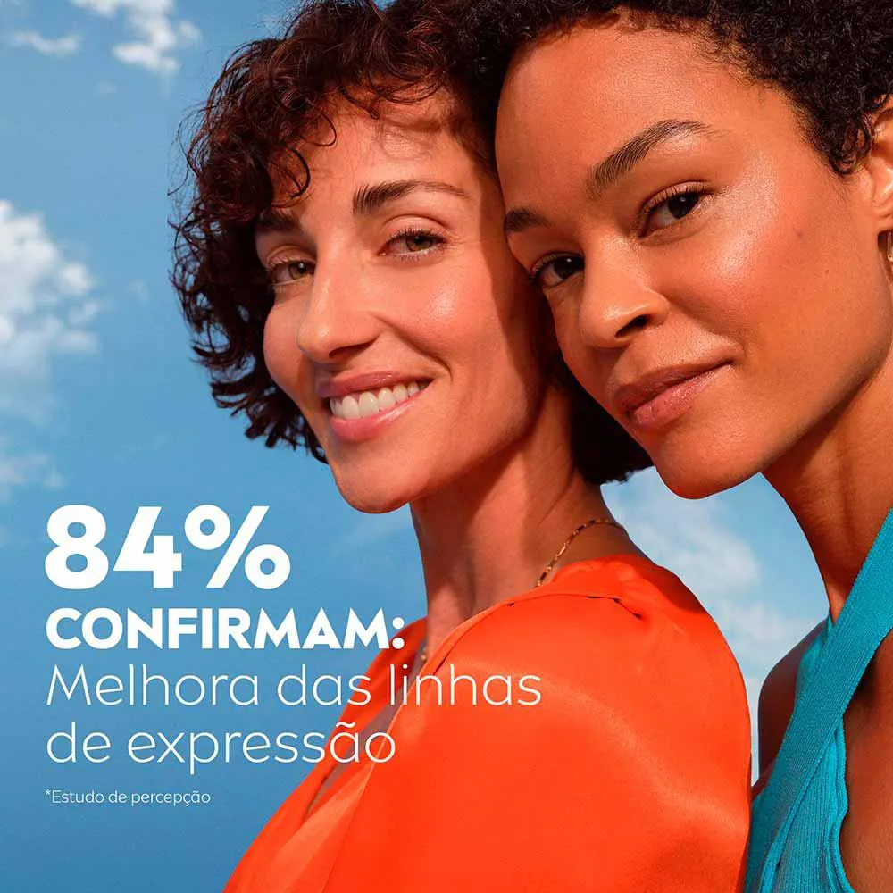 Os outros dois são a vitamina c, que proporciona uma pele mais iluminada e saudável e a vitamina e, que suaviza as linhas finas e as rugas, promovendo uma aparência mais descansada e radiante.