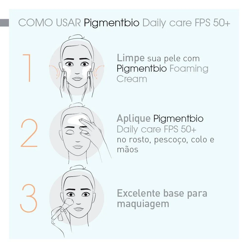 Aplicar de manhã no rosto, pescoço e colo após a limpeza com Pigmentbio H2O ou Pigmentbio Foaming Cream e o cuidado clareador diário, como Pigmentbio C Concentrate. Excelente base de maquiagem.