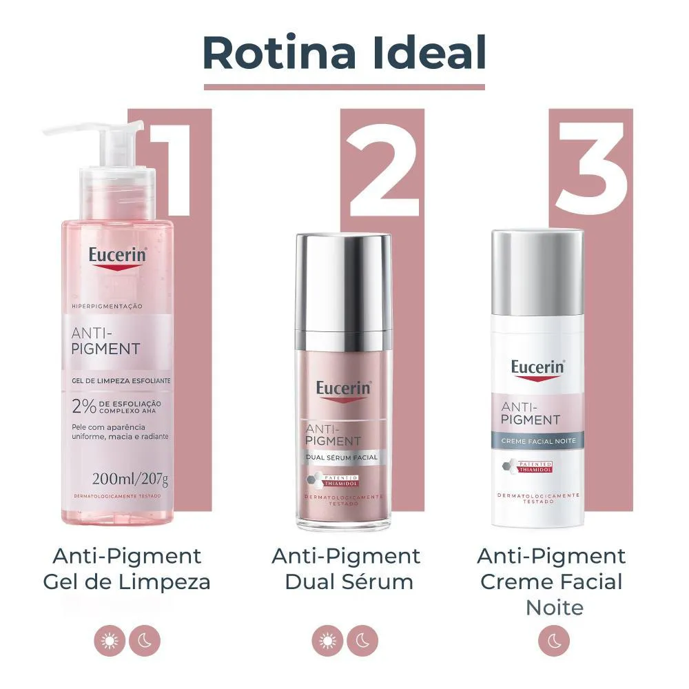 O Creme Facial Clareador Eucerin Anti-Pigment Noite reduz e previne a hiperpigmentação, tornando a pele uniforme e iluminada.
