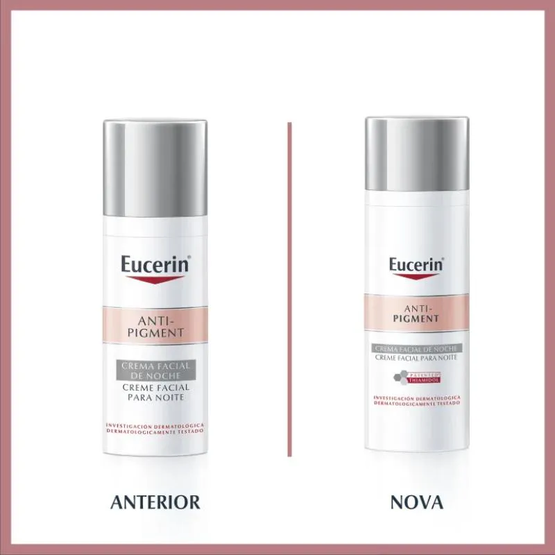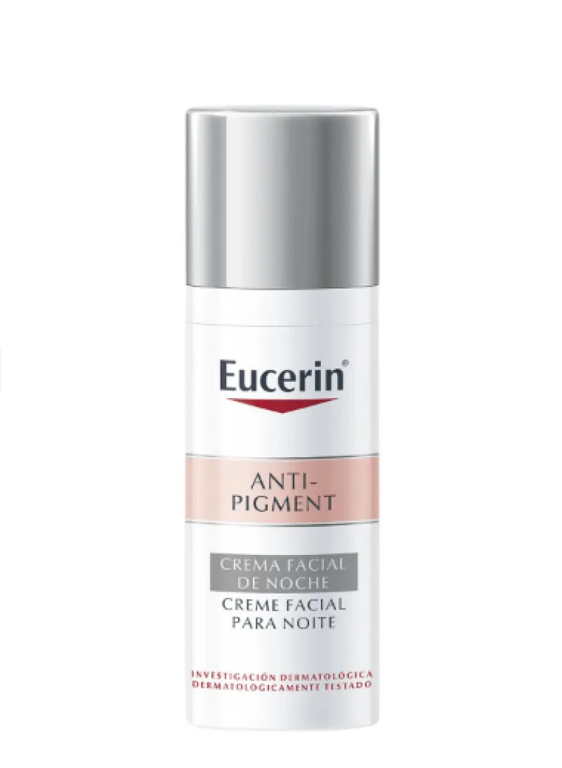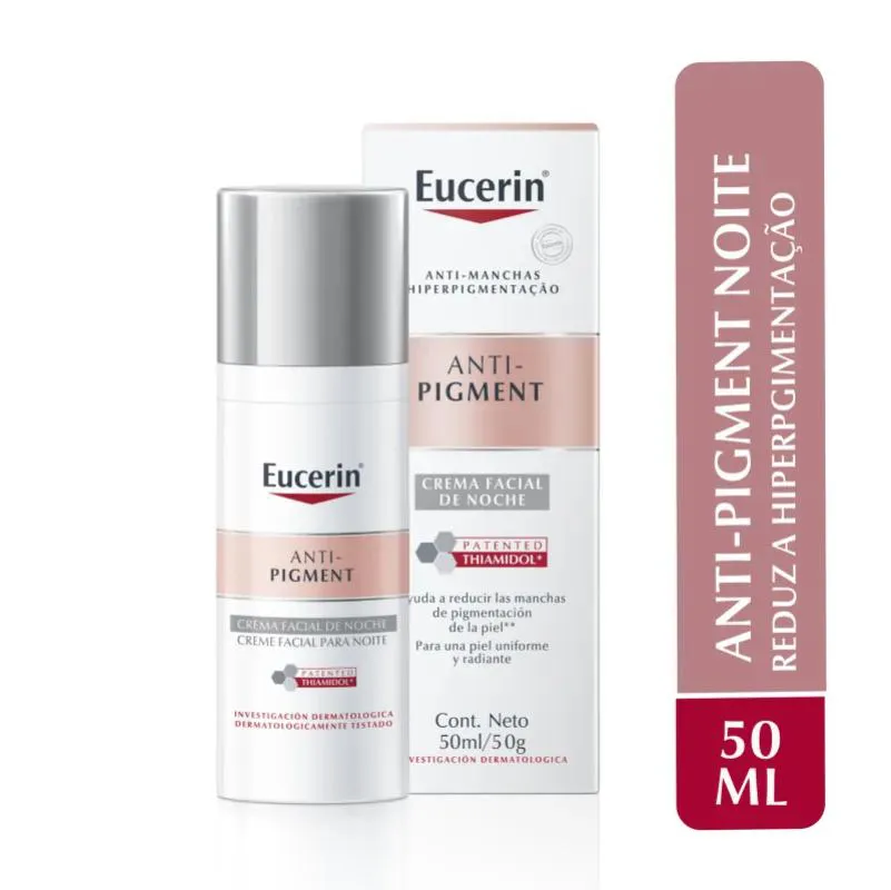 O Eucerin Anti-Pigment Noite é um creme facial de uso noturno que reduz as manchas escuras no rosto, além de prevenir o desenvolvimento de hiperpigmentação ou o seu reaparecimento. Sua fórmula contém Thiamidol, um ingrediente exclusivo da Eucerin, que inibe a produção de melanina, causa principal da hiperpigmentação e, Dexpantenol, ativo conhecido por contribuir para a renovação natural da pele durante a noite e o fortalecimento da barreira mantendo a pele hidratada.Para que serve o Eucerin Anti-Pigment Noite?