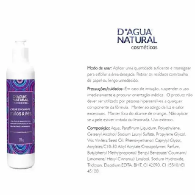 O que será enviado?01x UNIDADE - Creme Hidratante mãos e pés Ultra Hidratação 230g - D'Água Natural.