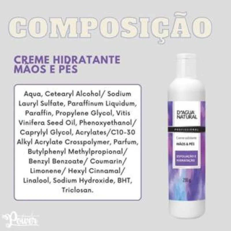 SOBRE O PRODUTODesenvolvido para hidratar a pele das mãos e pés, com um toque suave e delicado. Este produto é um grande aliado das manicures e pedicures, pois ainda atua como emoliente para as cutículas e finalizador nutritivo para a pele.