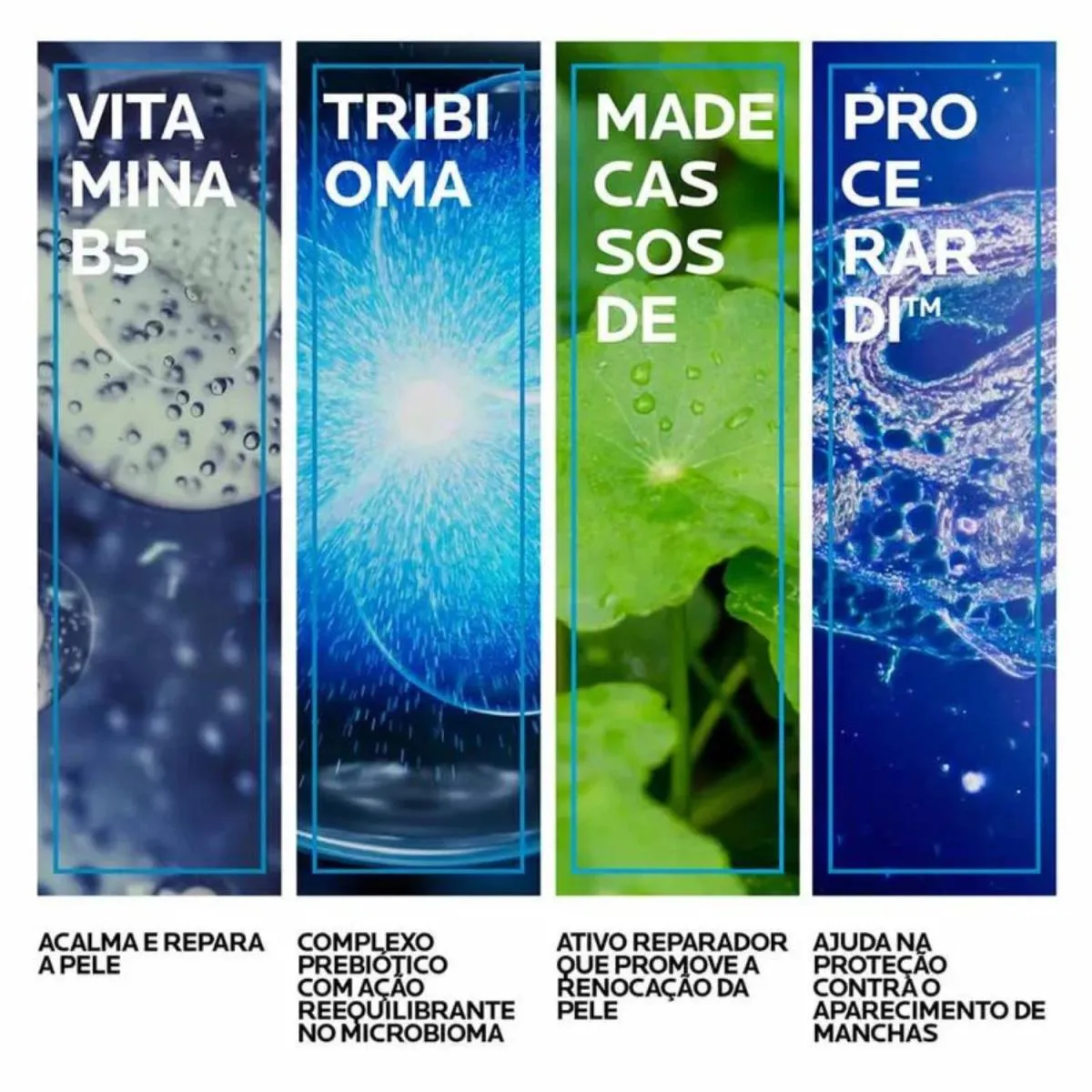 - Enriquecido com complexo prebiótico, Pantenol e Madecassoside.