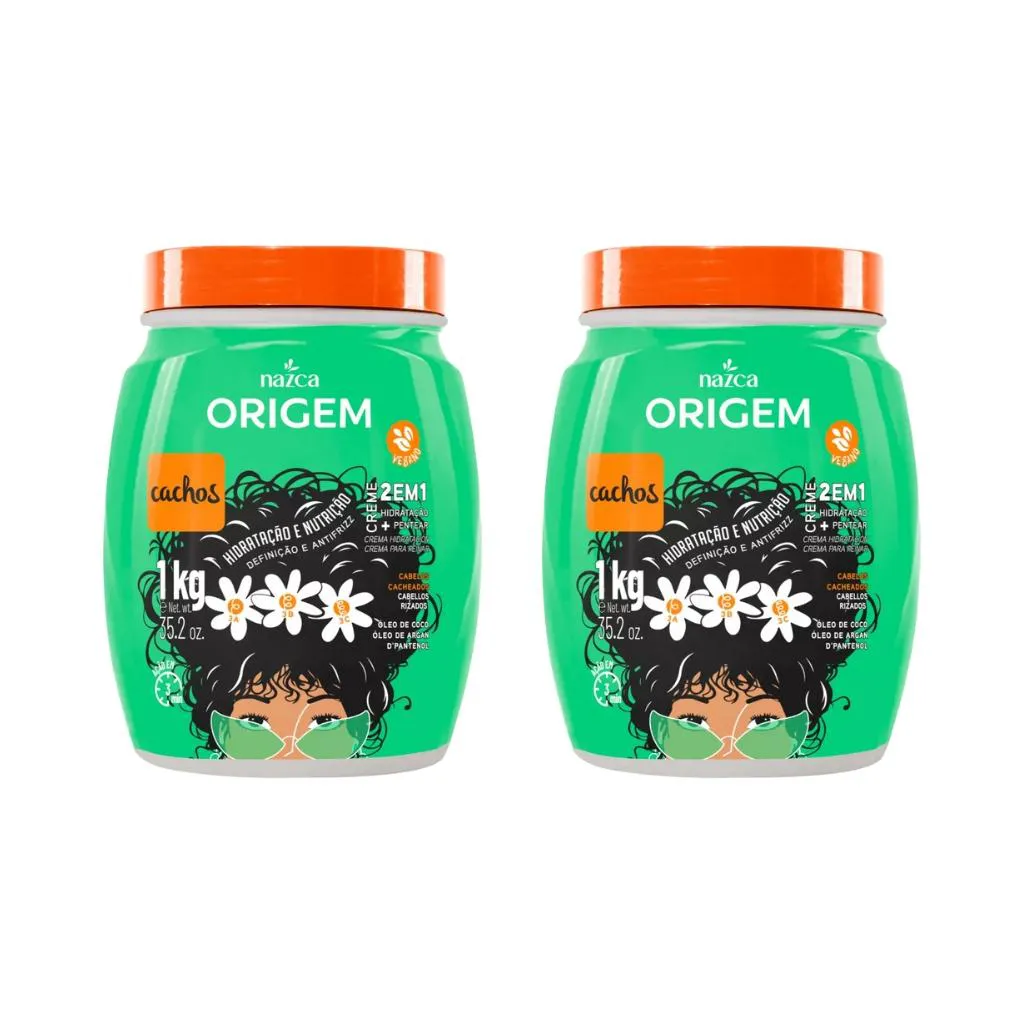 Esse kit contém: 2 Creme Origem 1kg 2em1 Hidratar e Pentear Cachos Descrição O Creme Origem 2 em 1 Hidratar e Pentear Cachos 1kg foi especialmente desenvolvido para cuidar e definir cabelos cacheados, proporcionando hidratação intensa e controle do frizz. Sua fórmula nutritiva ajuda a manter os cachos macios, saudáveis e com brilho natural, valorizando a forma e a textura dos fios. Versátil e prático, o produto pode ser usado tanto como creme de hidratação quanto como creme para pentear, facilitando o desembaraço e deixando os cachos definidos sem pesar. Ele proporciona maleabilidade e elasticidade, mantendo os fios alinhados e com movimento natural. O Origem 2 em 1 Cachos transforma a rotina de cuidados capilares em um verdadeiro tratamento, garantindo fios hidratados, nutridos e com cachos definidos e radiantes. Modo de Usar Como Creme de Hidratação: