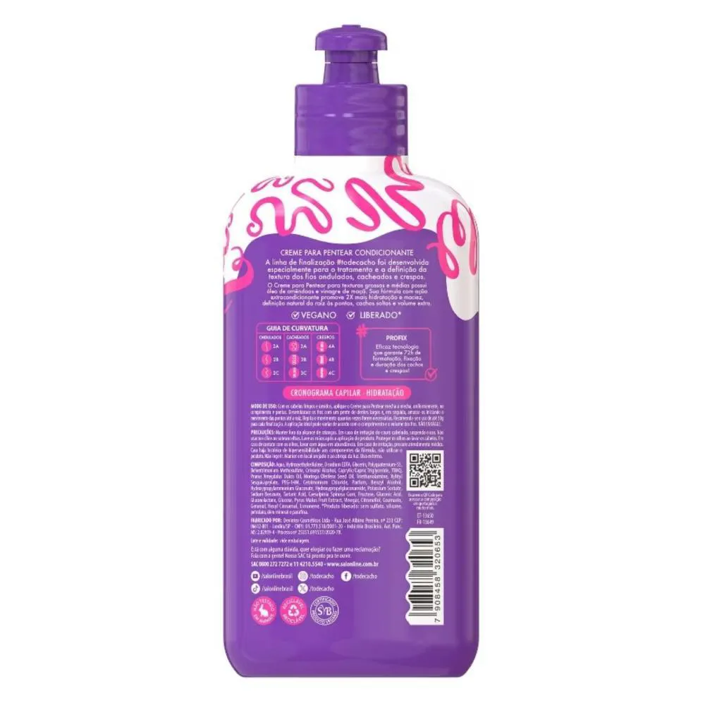 O Creme Para Pentear Salon Line Cacho Dos Sonhos é um produto capilar desenvolvido especificamente para cabelos cacheados, com uma fórmula nutritiva e textura leve. Enriquecido com óleo de amêndoas, vinagre de maçã e água de rosas, o creme atua diretamente na fibra capilar para melhorar a aparência e saúde dos cachos. Ele é livre de sulfatos, parabenos, petrolatos e silicone, sendo ideal para cabelos com curvaturas 2ABC e 3A. Seu objetivo principal é proporcionar cachos leves, definidos e com movimento natural, oferecendo hidratação profunda, controle de frizz e definição prolongada, sem pesar os fios.