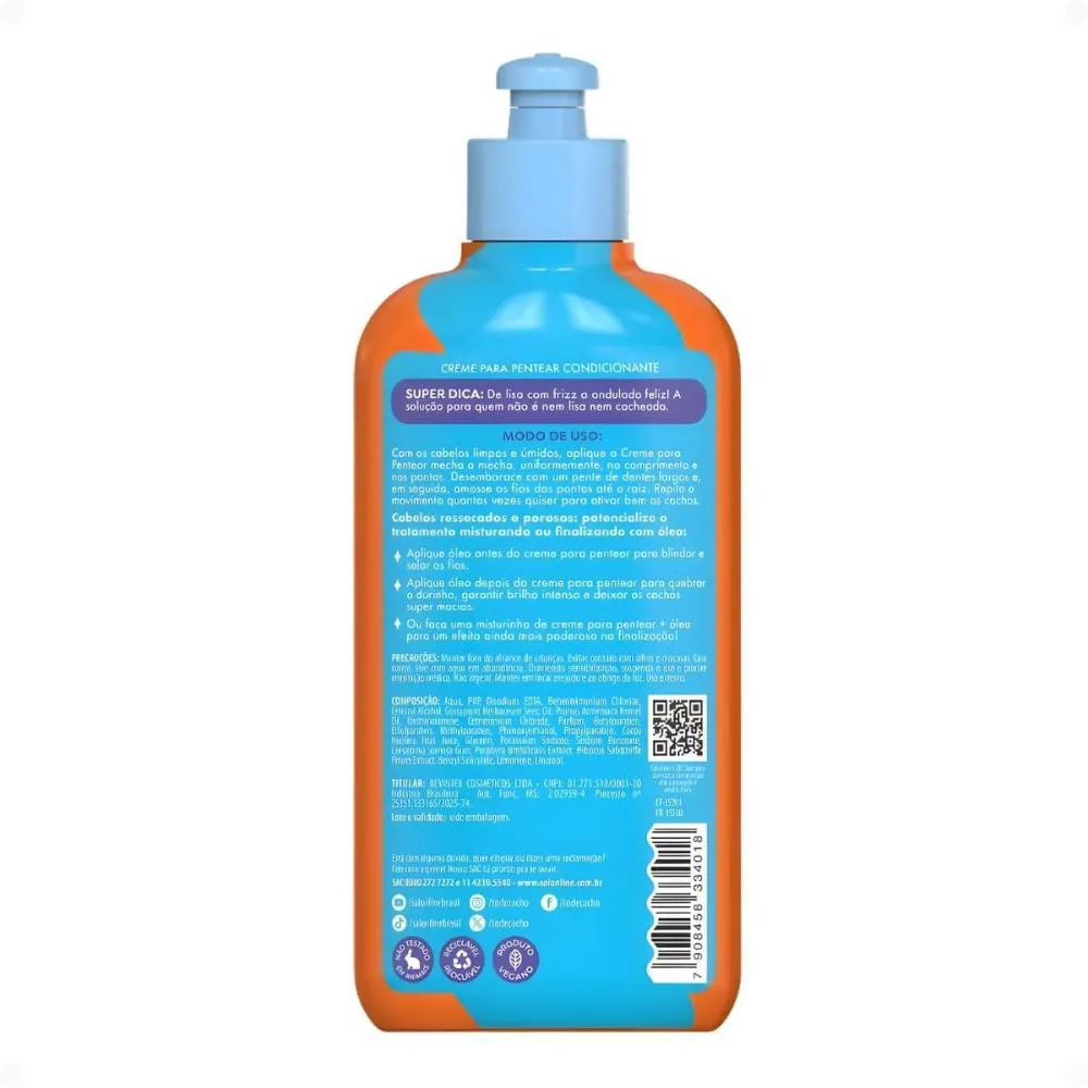 Com os cabelos limpos e úmidos, aplique o creme mecha a mecha, uniformemente, no comprimento e nas pontas. Desembarace com um pente de dentes largos e, em seguida, amasse os fios das pontas até a raiz. Repita o movimento quantas vezes quiser para ativar bem os cachos. Não enxágue.Anvisa: 25351.133165/2025-74