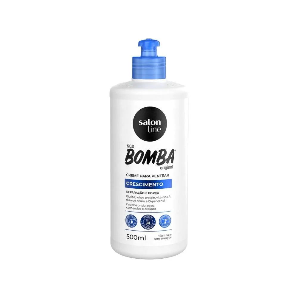 Ah, e a fórmula também ajuda o cabelo a crescer mais forte e saudável, além de reduzir a queda por quebra! S.O.S Bomba Original oferece ativos que vão ajudar nos cuidados diários dos cabelos sejam eles lisos, ondulados, cacheados ou crespos. Modo de Usar:Com o cabelo limpo e úmido, aplique o Creme para Pentear S.O.S Bomba Original.