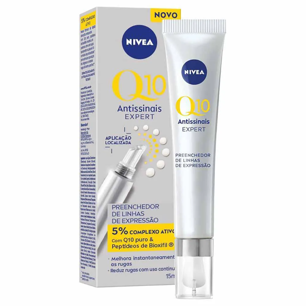 O que é: O NIVEA Preenchedor Q10 Expert Antissinais é um preenchedor de linhas de expressão com efeito em 5 minutos. Desenvolvido para proporcionar melhora instantânea das rugas e redução delas com o uso contínuo.