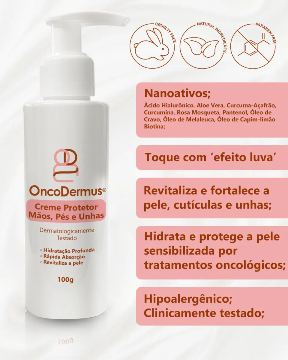 Creme Protetor para Mãos, Pés e Unhas, 100G, Hidratação Profunda Oncodermus
