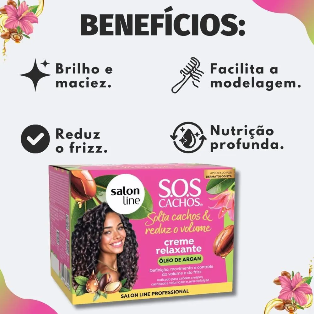 Creme Relaxante Salon Line Sos Cachos Solta Cachos e Reduz Volume