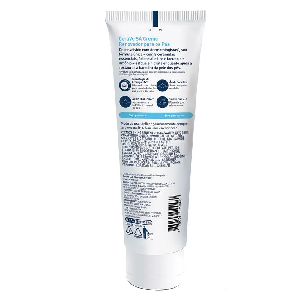 Modo de Uso:Aplique o Creme Renovador de Pés CeraVe generosamente sempre que necessário.