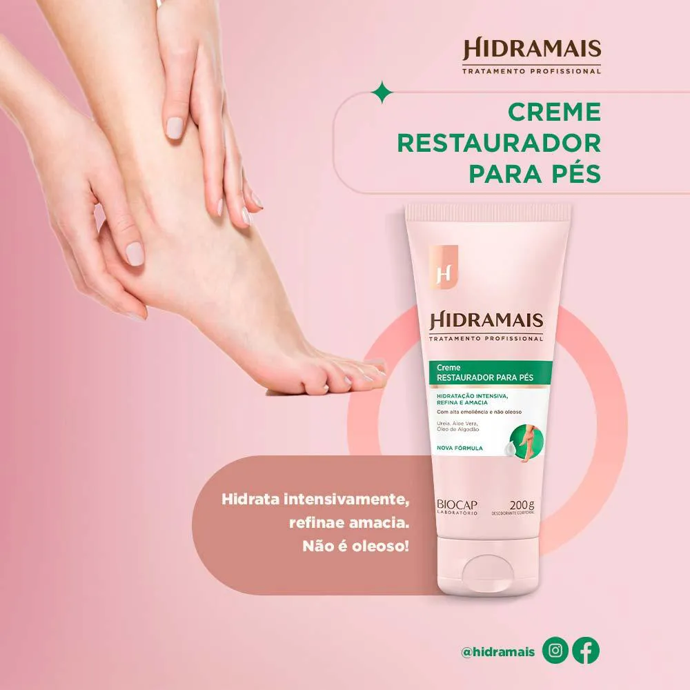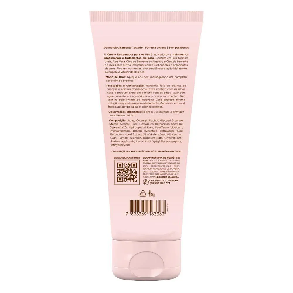 O Creme Restaurador para os pés é indicado para tratamentos profissionais e tratamentos em casa. Contém em sua fórmula Ureia, Aloe Vera, Óleo de Semente de algodão e Óleo de Semente de Uva.