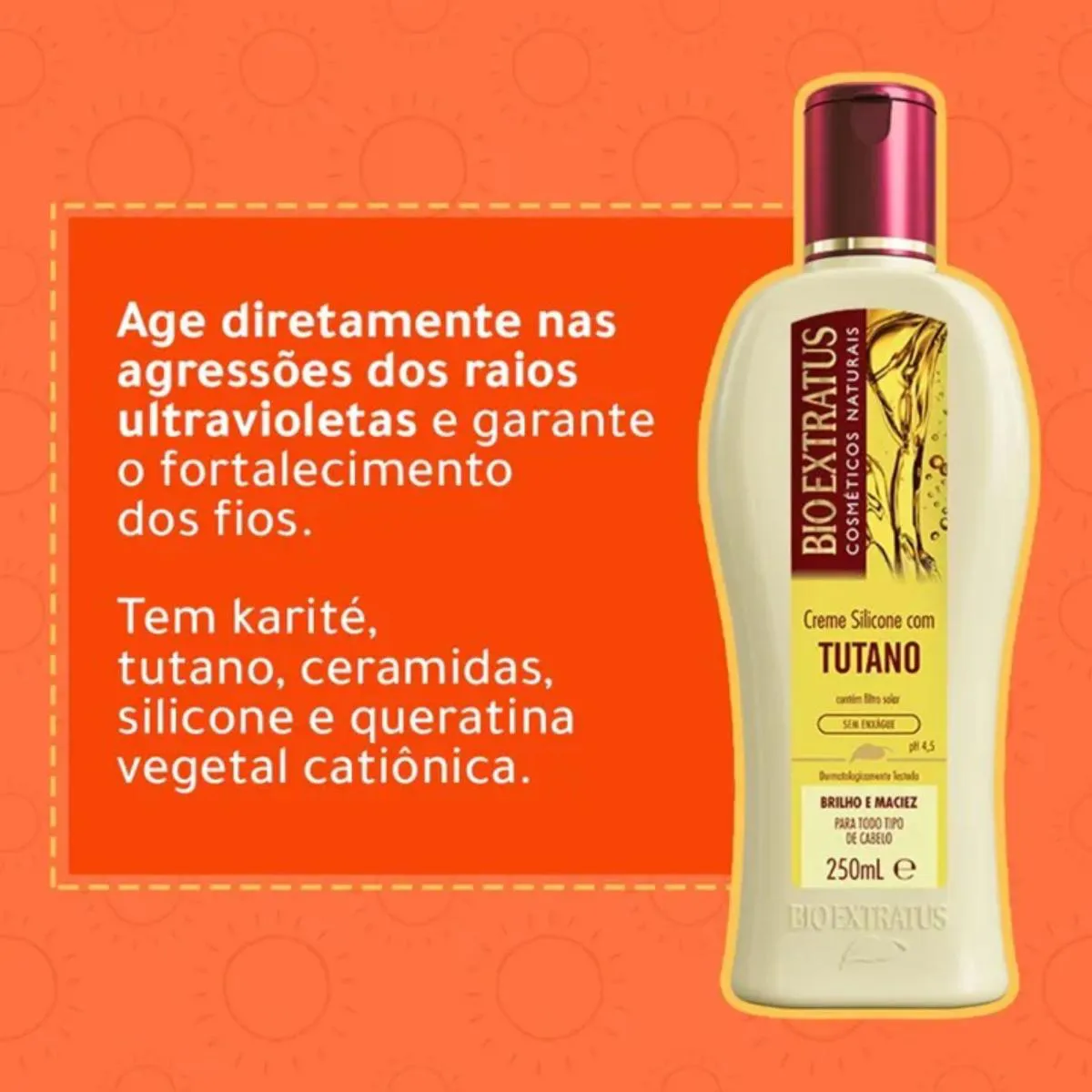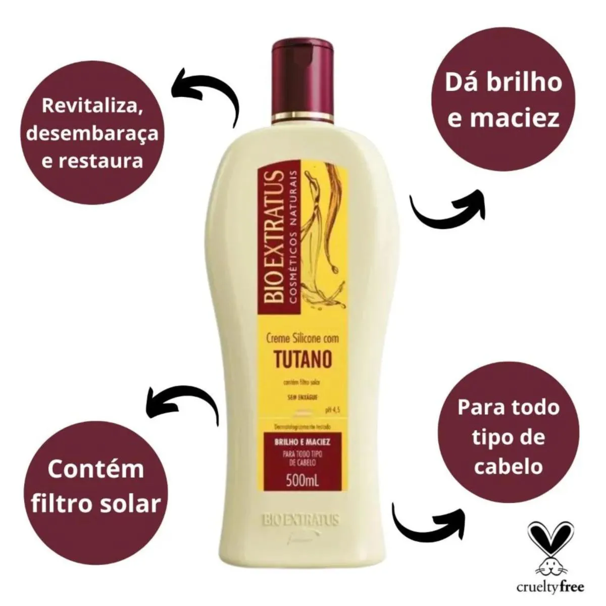 O Creme Silicone com Tutano e Filtro Solar 500ml da Bio Extratus é um produto multifuncional desenvolvido para cuidar dos cabelos, promovendo hidratação, proteção e revitalização. Ele é ideal para todos os tipos de cabelos, especialmente os danificados ou quimicamente tratados.