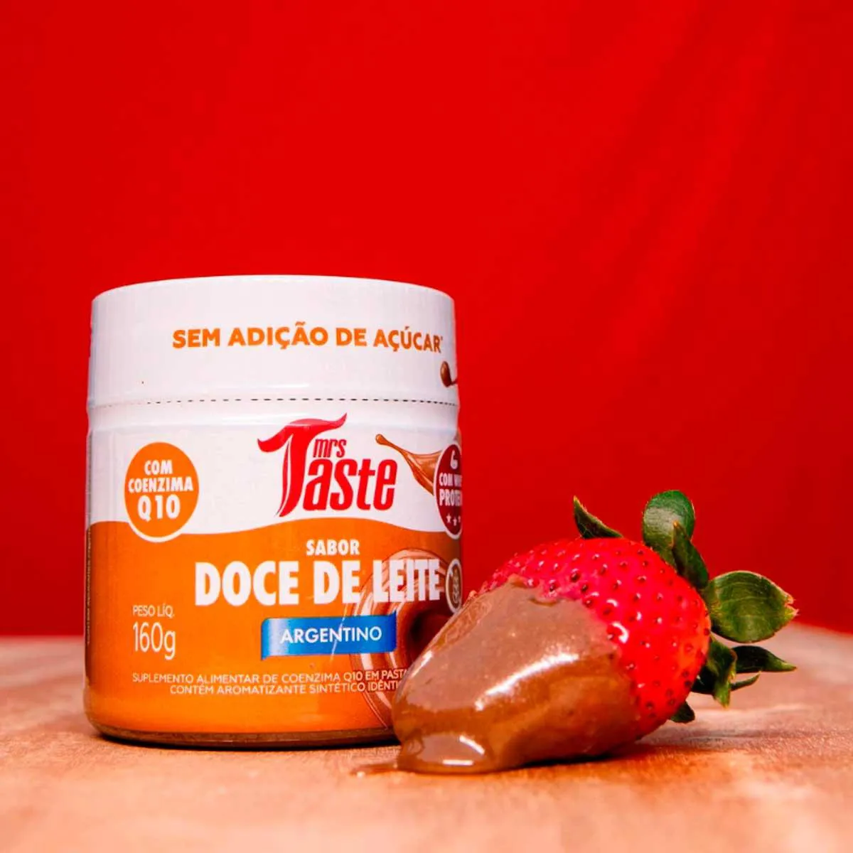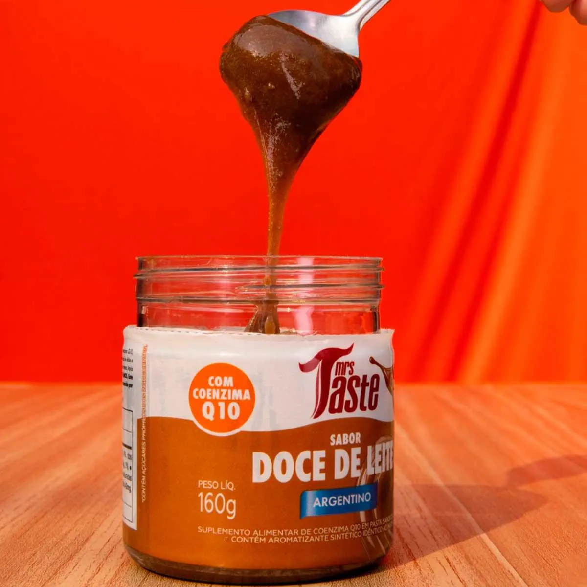 Creme Spread - Doce de Leite Ingredientes: Maltitol, leite desnatado em pó, água, gordura vegetal, polidextrose, proteína concentrada do soro de leite, coenzima Q10, espessante pectina, aromatizantes, conservador sorbato de potássio, emulsificante lecitina de soja, regulador de acidez bicarbonato de sódio e edulcorante stevia. NÃO CONTÉM GLÚTEN. CONTÉM DERIVADOS DE LEITE E SOJA. Mudança na rotulagem nutricional Informamos que passamos recentemente por uma mudança na rotulagem nutricional nos produtos da Mrs. Taste devido às novas legislações RDC Nº 429/20 e IN Nº75/20 da ANVISA. Portanto, os lotes mais recentes estão com diferentes caracterizações.