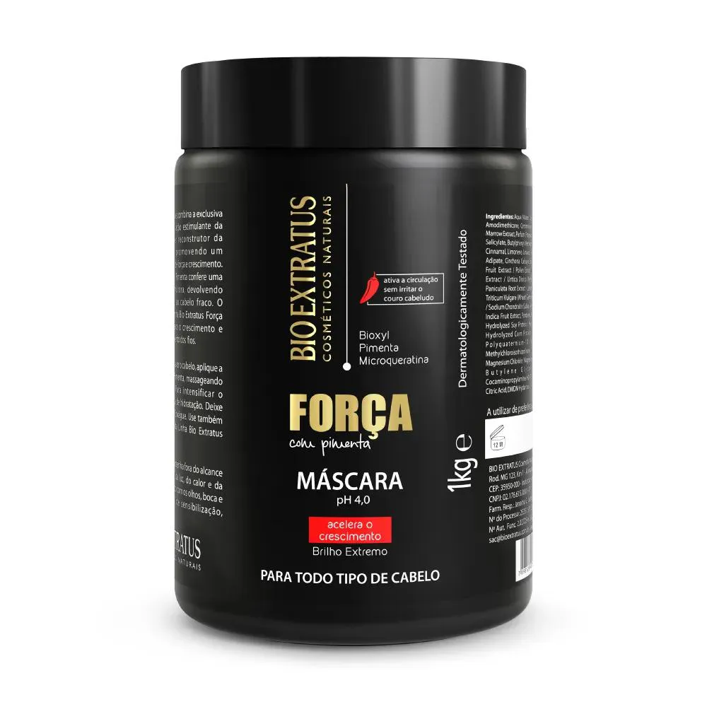 máscara Força com Pimenta - Fórmula inovadora que combina a exclusiva tecnologia Bioxyl, a ação estimulante da pimenta e o poder reconstrutor da microqueratina, promovendo um tratamento intensivo de força e crescimento. A Máscara Força com Pimenta confere uma hidratação reconstrutora, devolvendo brilho e vitalidade ao cabelo fraco. O tratamento com a linha Bio Extratus Força com Pimenta acelera o crescimento e promove o fortalecimento dos fios. pH 4,0.