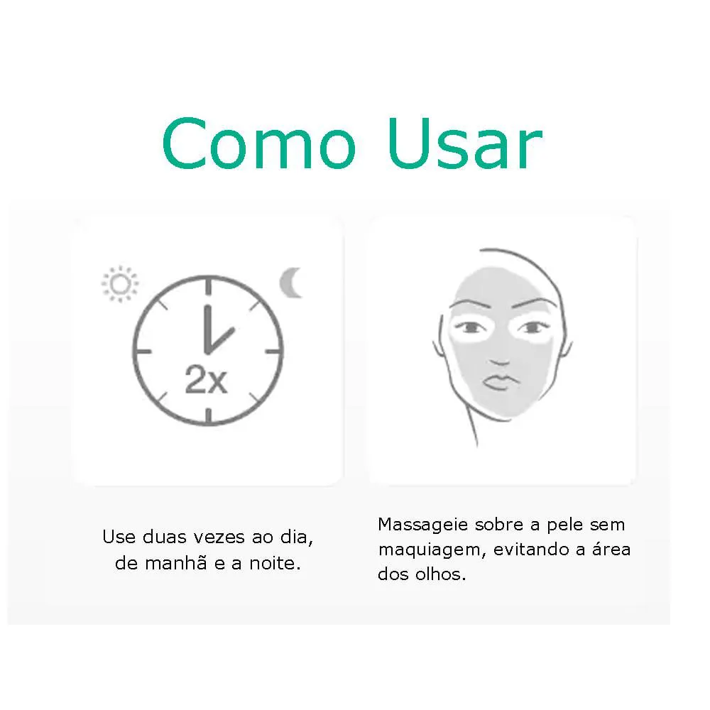 • Aplique sobre a pele limpa, evitando a área dos olhos.