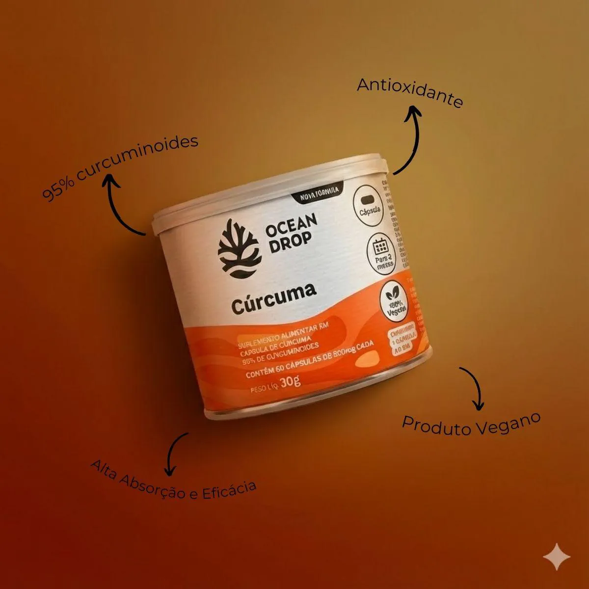 Curcuma 30G Alta Concentração 60 Capsulas Ocean Drop