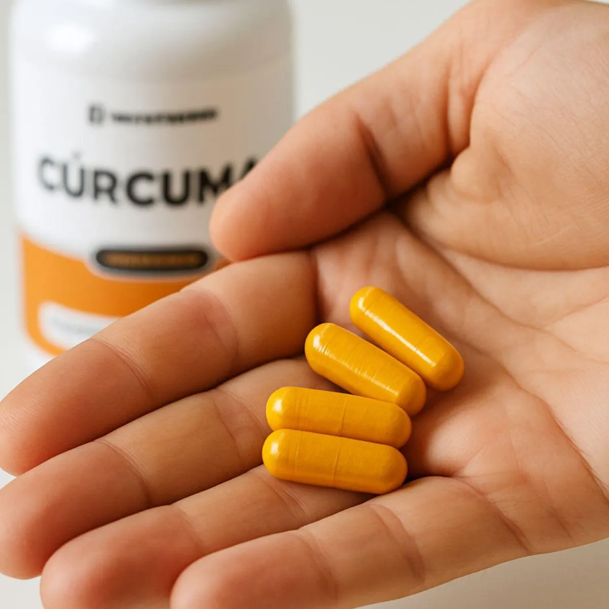 Entre os diferenciais, contém curcuminoides concentrados; frasco pequeno facilita transporte.