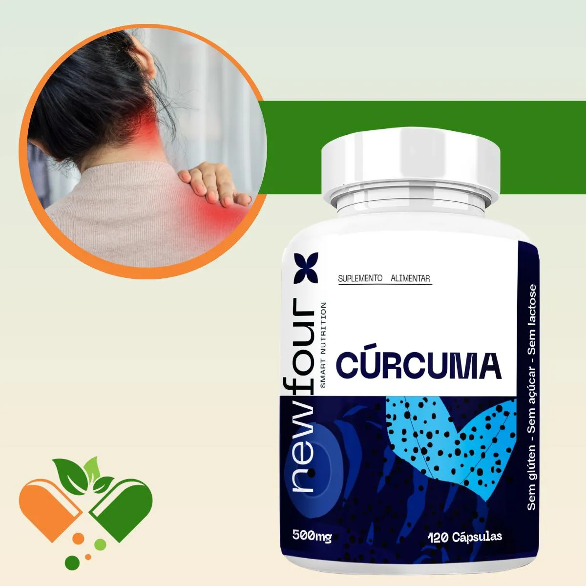 - Suplemento natural com extrato de cúrcuma.
