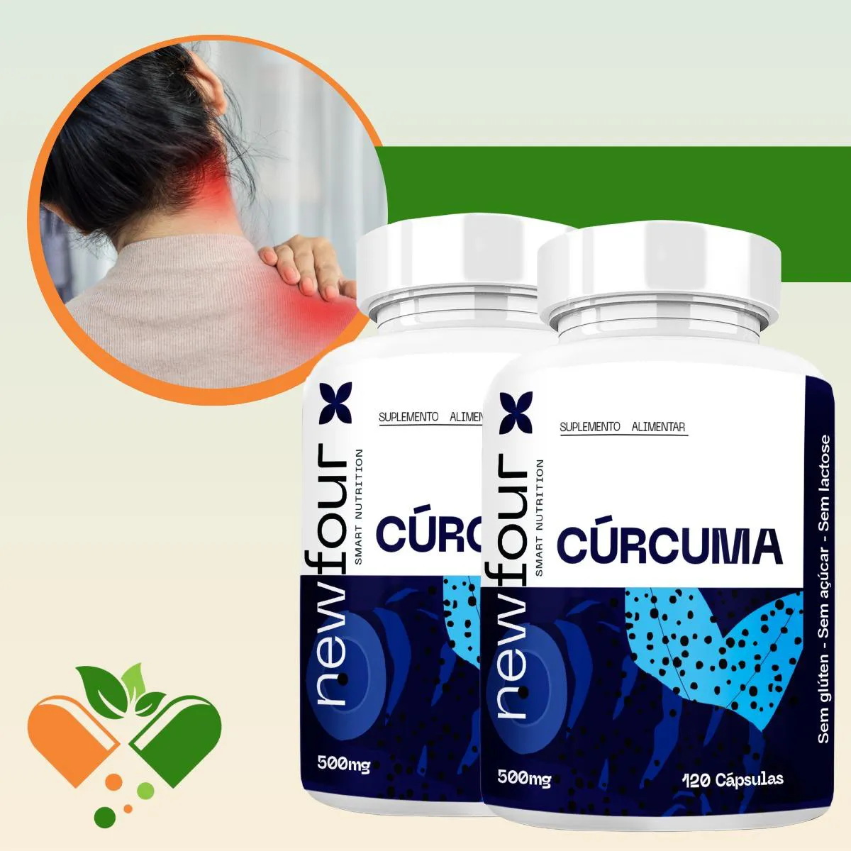 - Suplemento natural à base de cúrcuma, prático para o dia a dia.