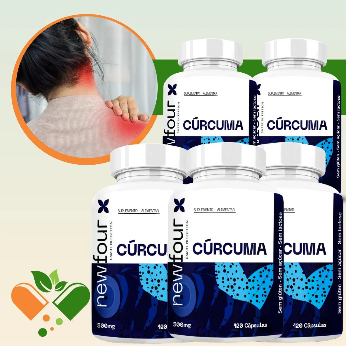 Curcuma Composta Kit com 5 Potes com Total de 600 Capsulas