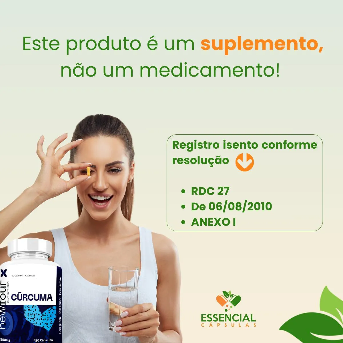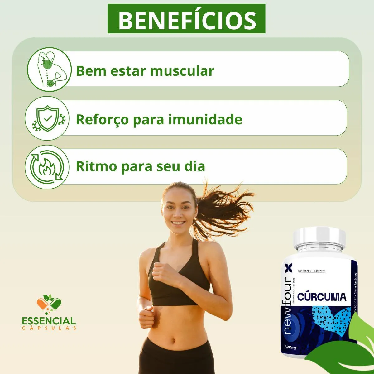 - Suplemento natural à base de cúrcuma, prático para o dia a dia.