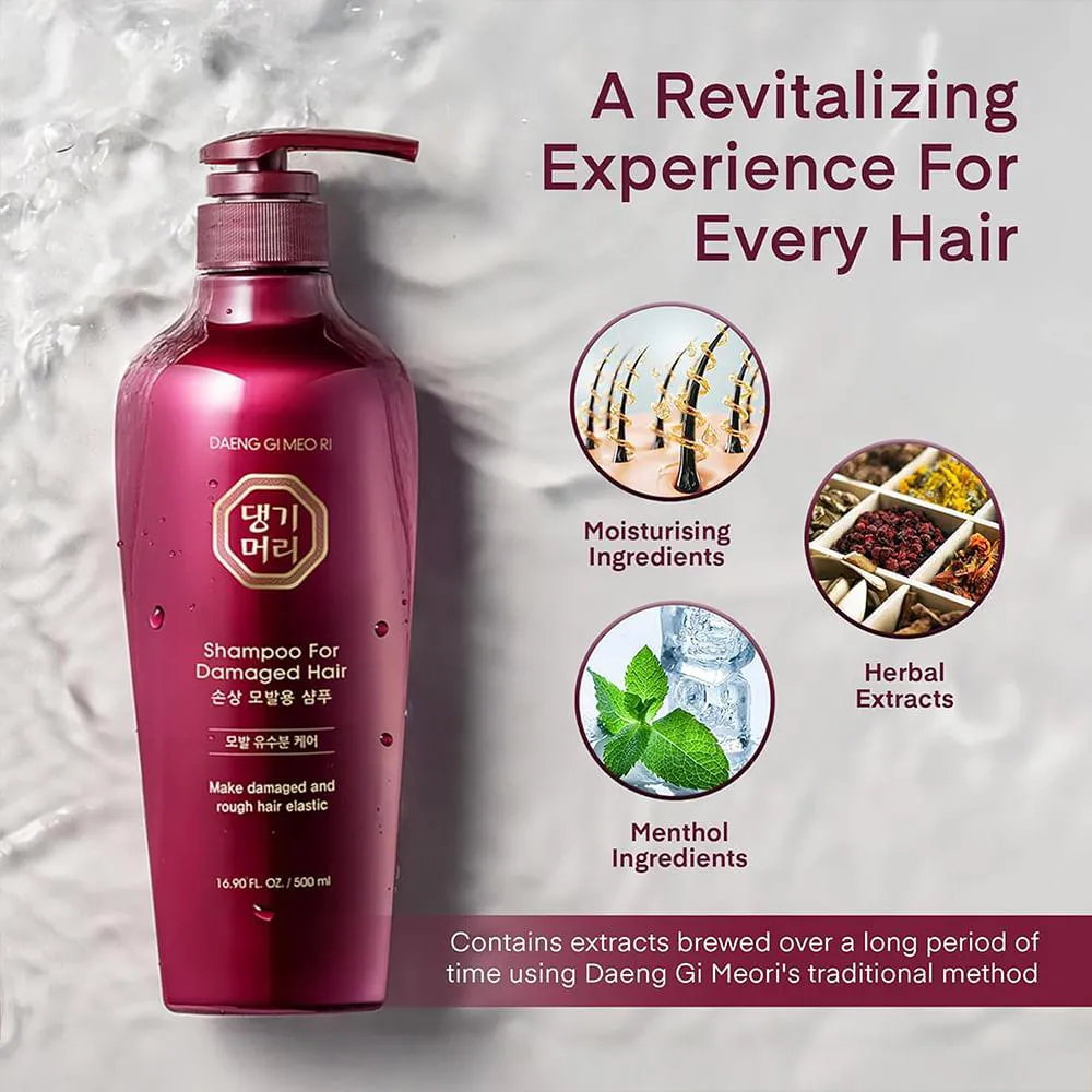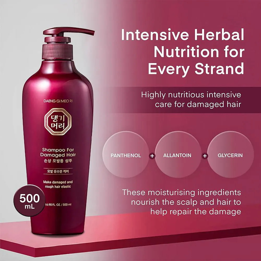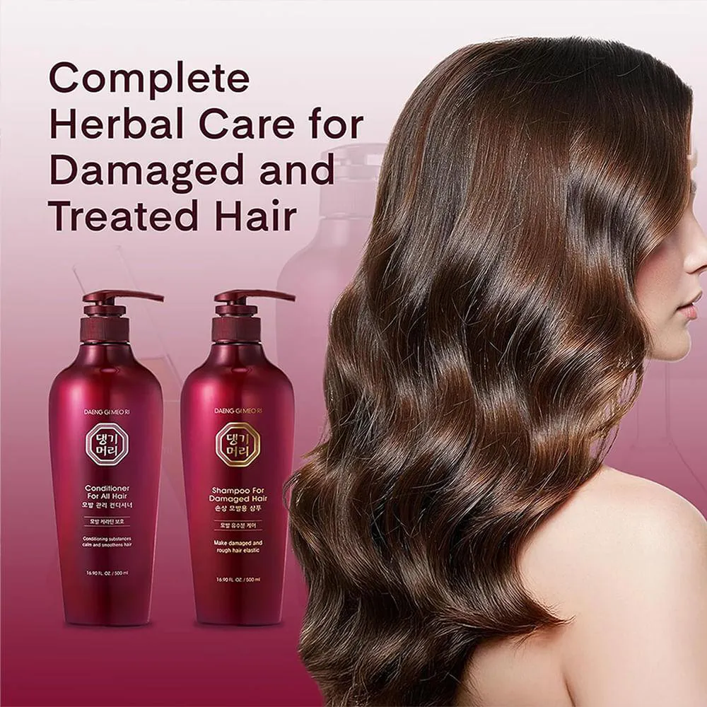 O Daeng Gi Meo Ri Damaged Hair Shampoo 500ml é o shampoo ideal para cabelos danificados, ressecados ou quimicamente tratados, oferecendo limpeza suave e reparação profunda com a tradição herbal coreana. Enriquecido com extratos de ginseng vermelho, crisântemo siberiano e mais de 30 ervas medicinais decoctadas por 72 horas, esse shampoo remove impurezas sem agredir, nutre o couro cabeludo e prepara os fios para uma reconstrução intensa, transformando cabelos ásperos, quebradiços e sem vida em fios limpos, macios, brilhantes e cheios de vitalidade desde a primeira lavagem.